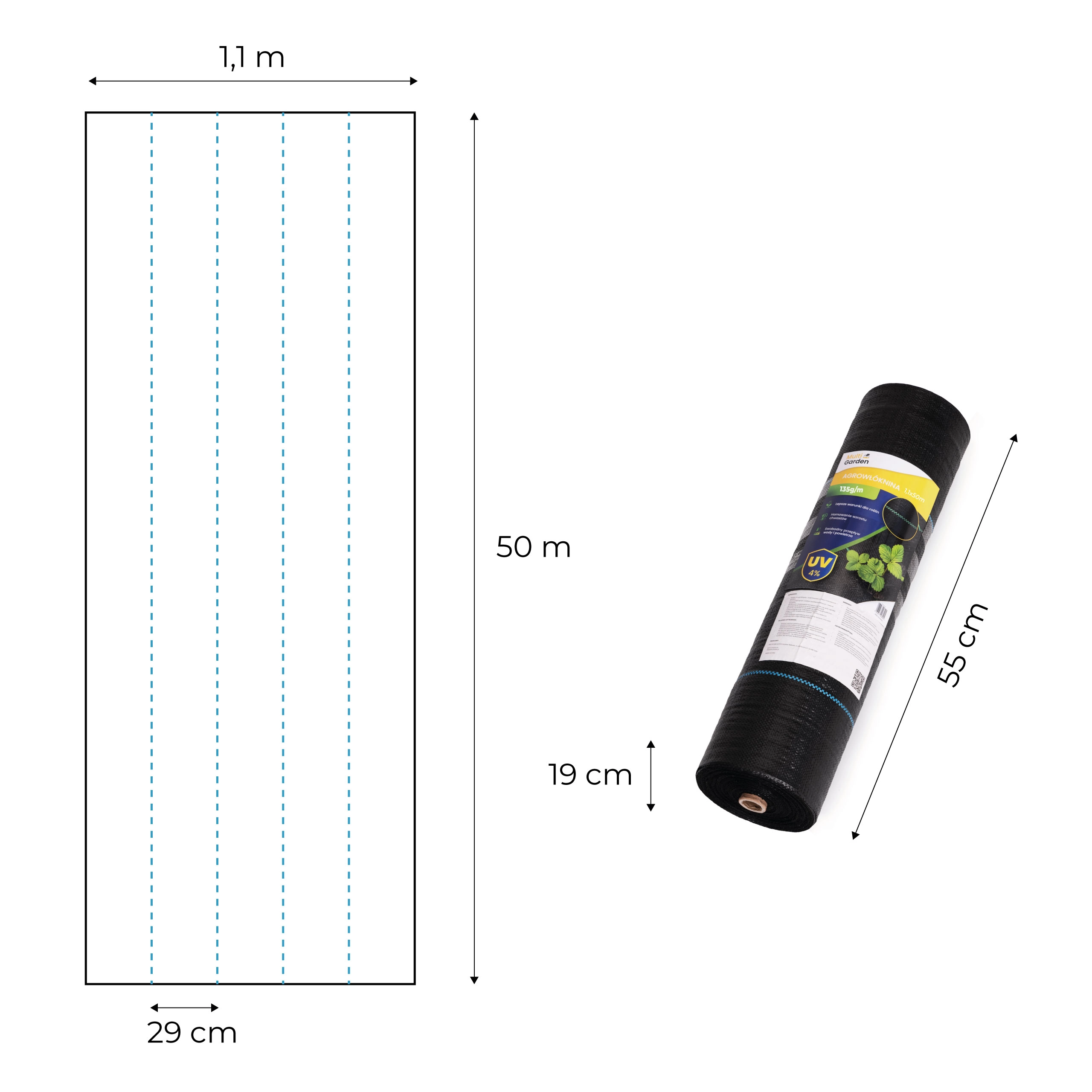 Gyomfogó agrotextil 135 g/m² 1,1×50 m rögzítő tüskékkel, MultiGarden
