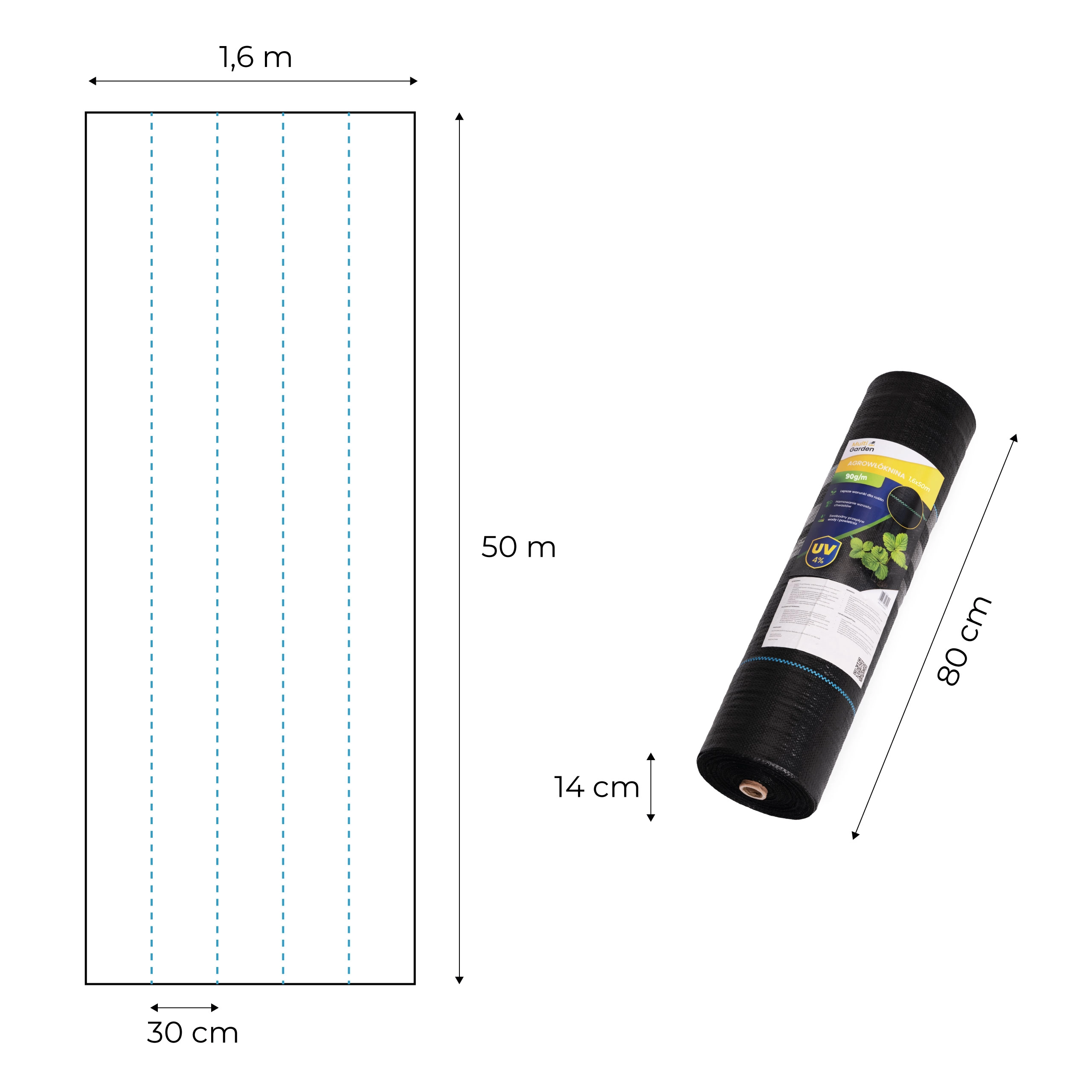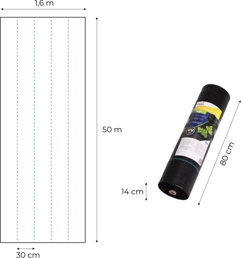 A UV-stabilizációnak és a strapabíró polipropilén szerkezetnek köszönhetően több szezonon át ellenáll a szakadásnak és az időjárás viszontagságainak. A 30 cm-enkénti kék vezetővonalak megkönnyítik a tőtávolság megtervezését és felgyorsítják a kerti munkát. A mellékelt cövekek szeles időben is biztonságosan a helyén tartják a textíliát.