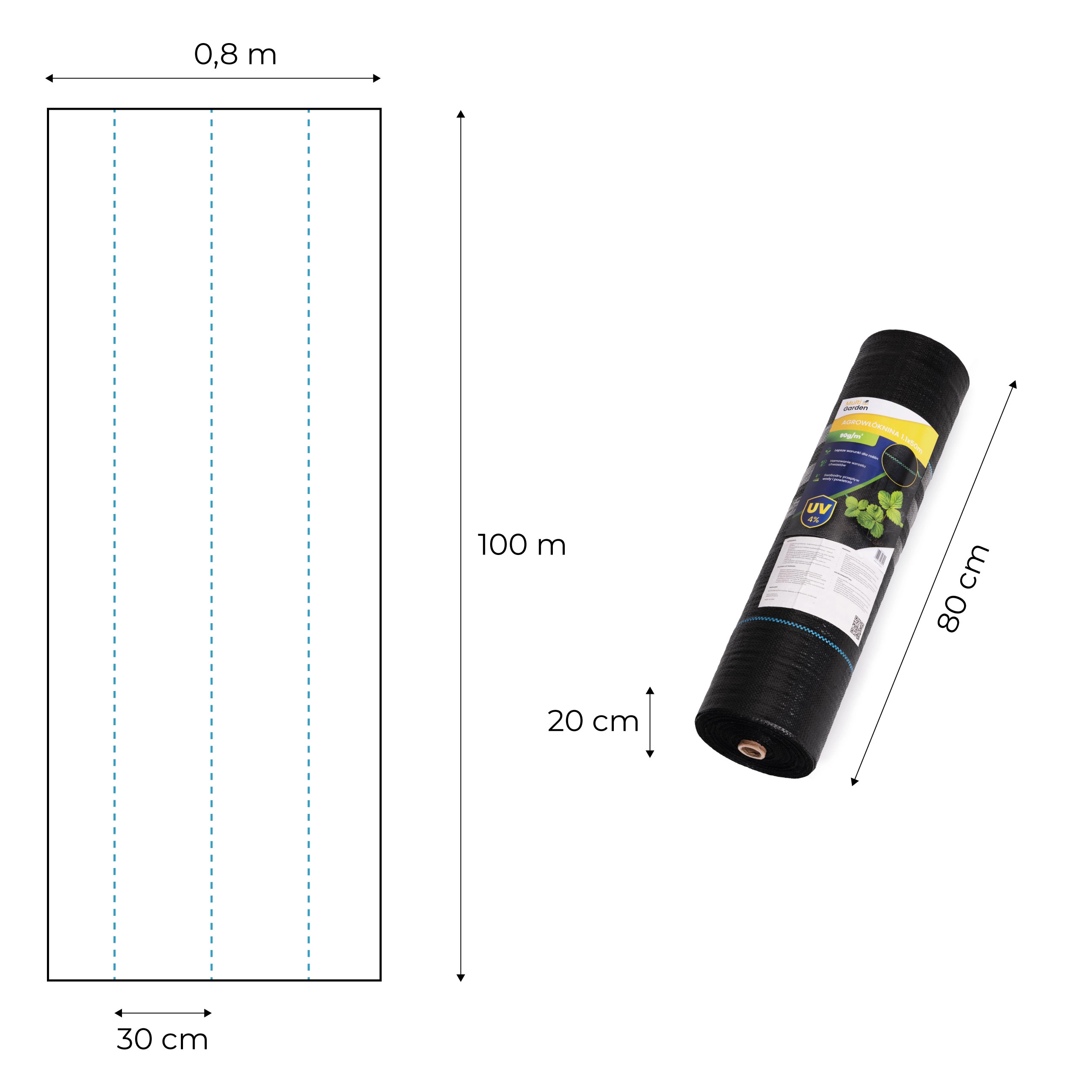 Egyszerű megoldást keres az ágyások és kerti utak gyommentesen tartására? Ez a 0,8 m széles és 100 m hosszú fekete agrotextília hatékony gyomgátat képez, miközben megőrzi a talaj nedvességét és támogatja a növények egészséges fejlődését. A UV-stabilizációnak és a megerősített PP szövetnek köszönhetően egész szezonban használható dísz- és zöldségágyásokban, cserjék, tuják, gyümölcsfák alatt, valamint kerti ösvényeken.
