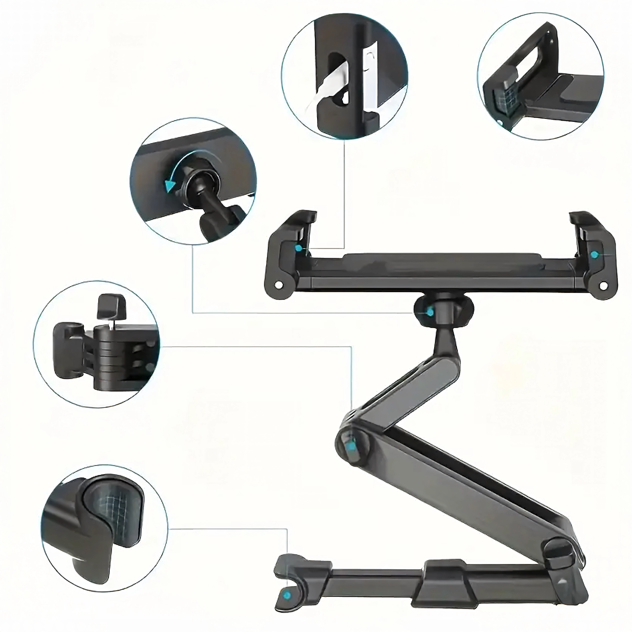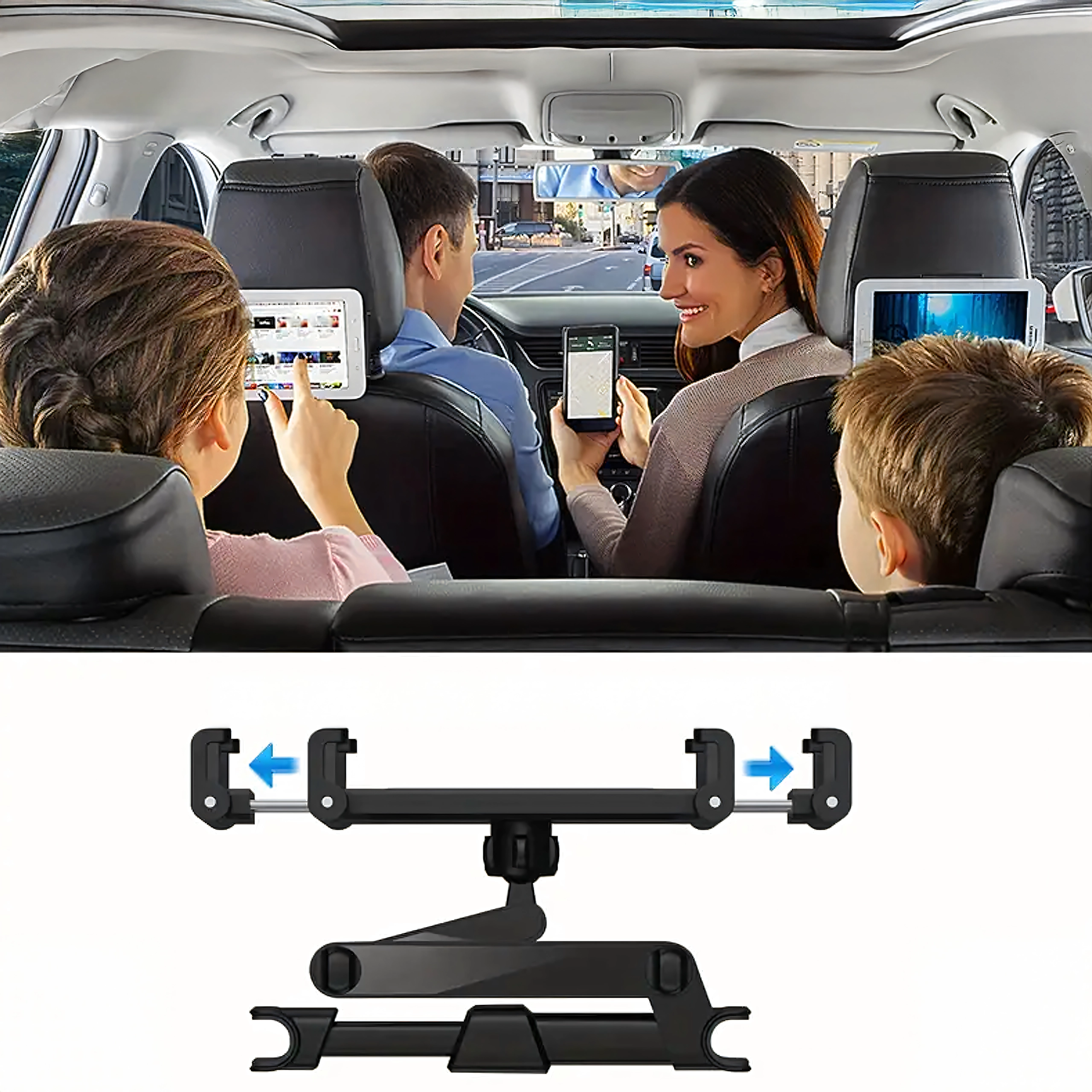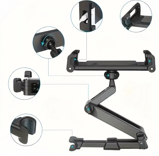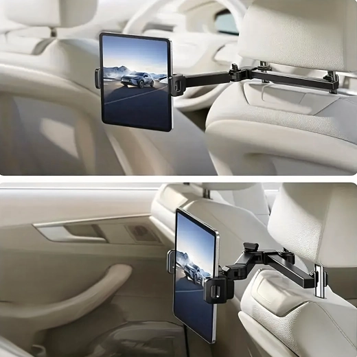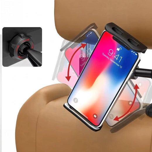 Az univerzális fejtámlatartó multimédiás sarokká varázsolja a hátsó ülést. A csuklós kialakításnak és a gömbfejnek köszönhetően 360°-os forgatást, széles kompatibilitást telefonokkal és tabletekkel, valamint rezgésmentes, stabil rögzítést kínál – ideális filmnézéshez, játékhoz és tanuláshoz utazás közben.