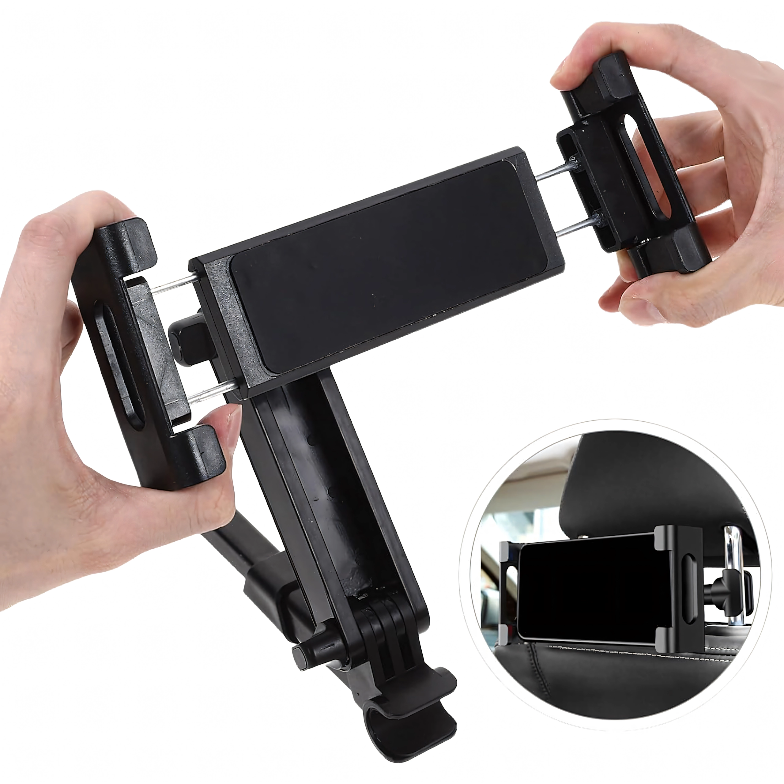 Élvezd a nyugodt utazást és a szórakozást az utasok számára. A masszív tartó a fejtámla rúdjai közé rögzíthető, és az állítható karoknak köszönhetően biztonságosan befogadja a legtöbb telefont és tabletet. A puha betétek megvédik a készüléket a karcolásoktól, míg a rögzítőcsavarok egyenetlen úton is stabil pozíciót biztosítanak.