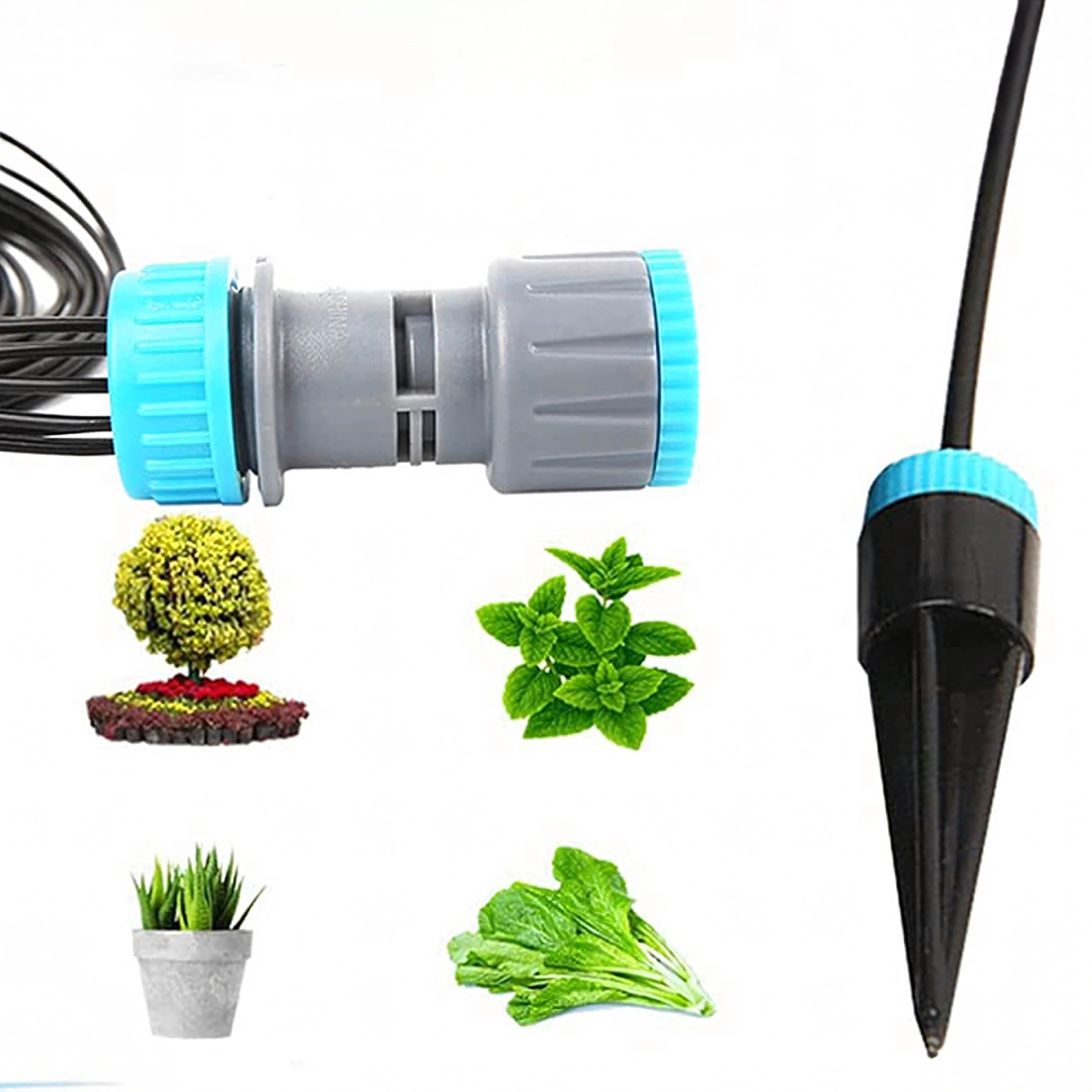 A tüske alakú csepegtetők könnyen a talajba szúrhatók, és pontosan oda juttatják a vizet, ahol a növényeknek a legnagyobb szükségük van rá – csökkentve a párolgást és támogatva az egészséges növekedést.
