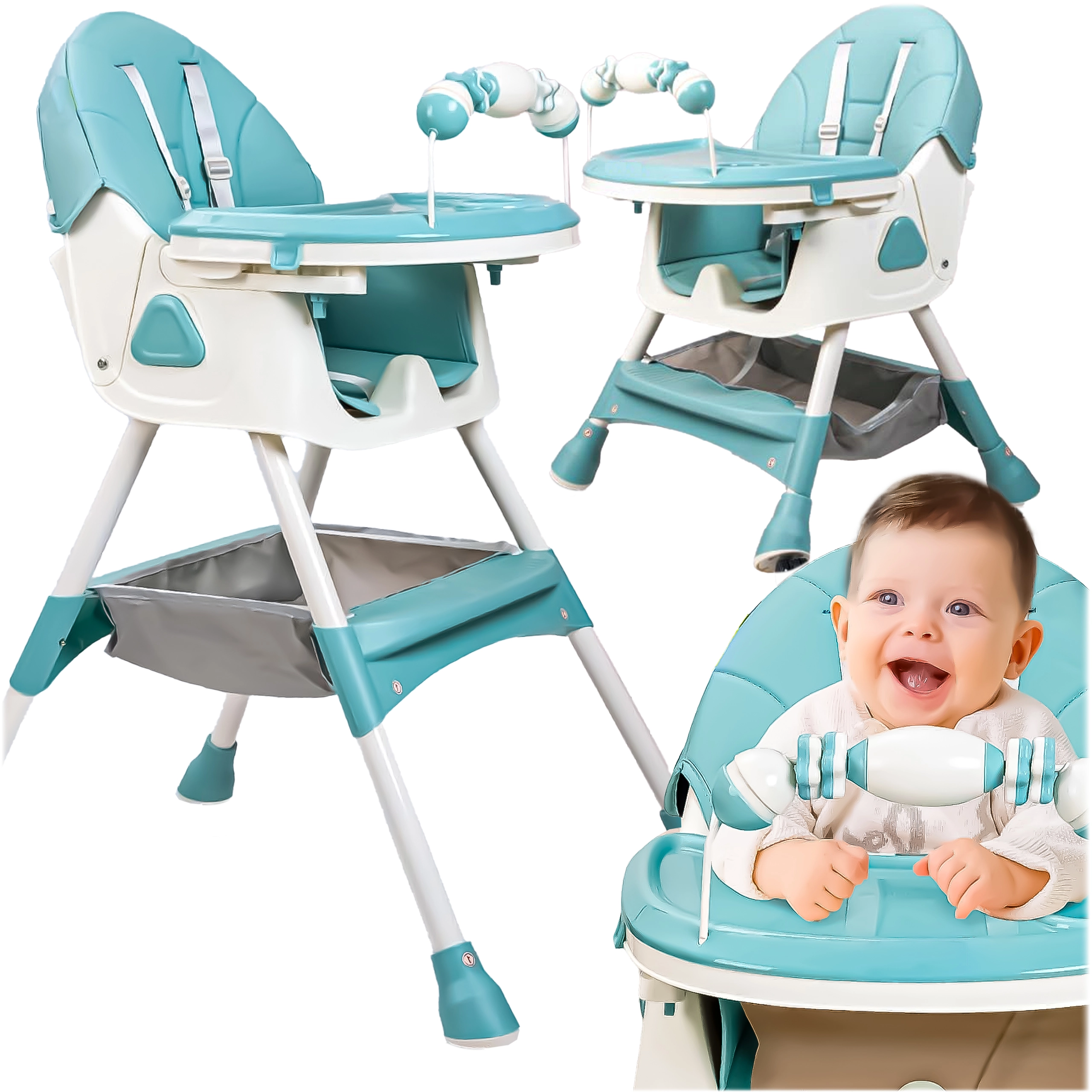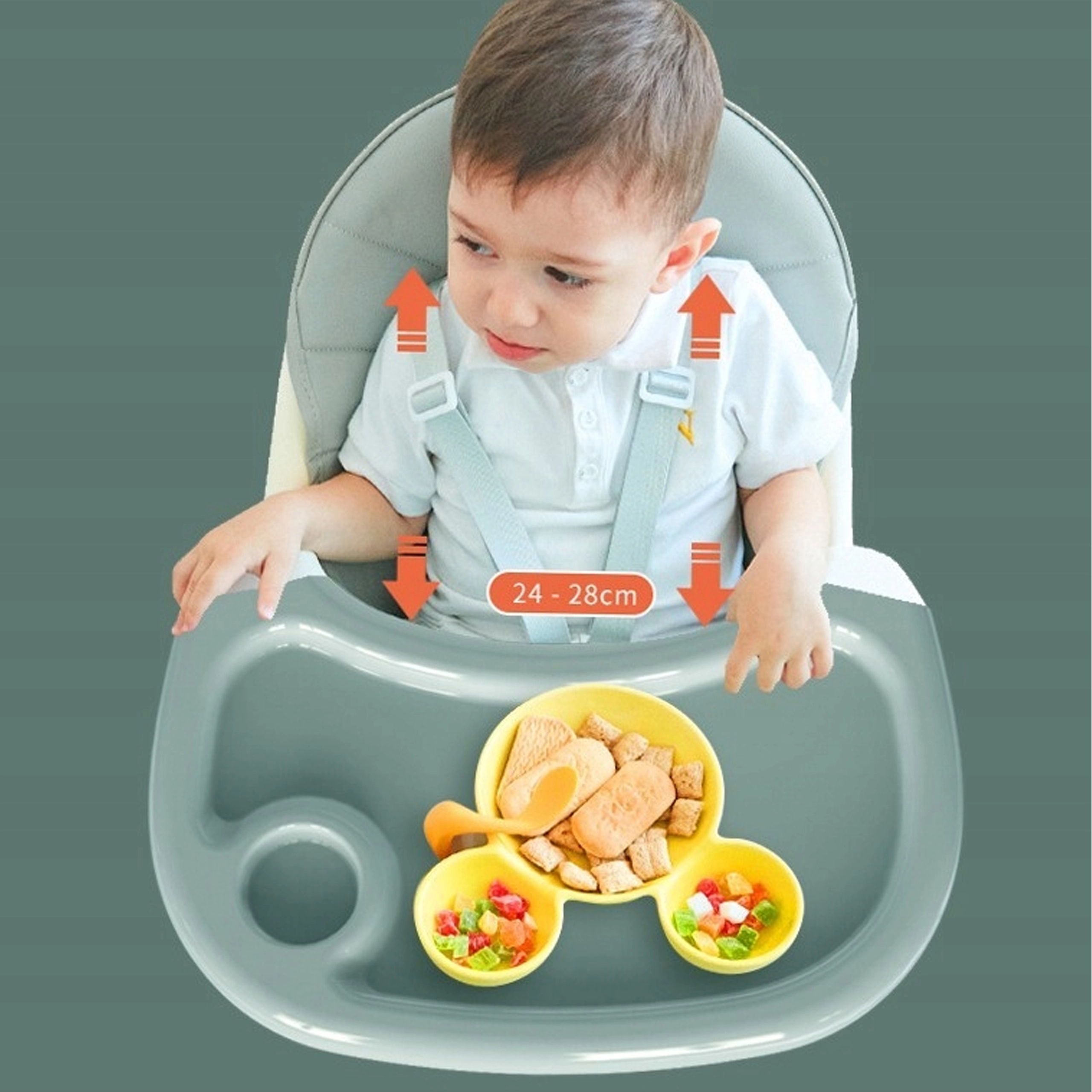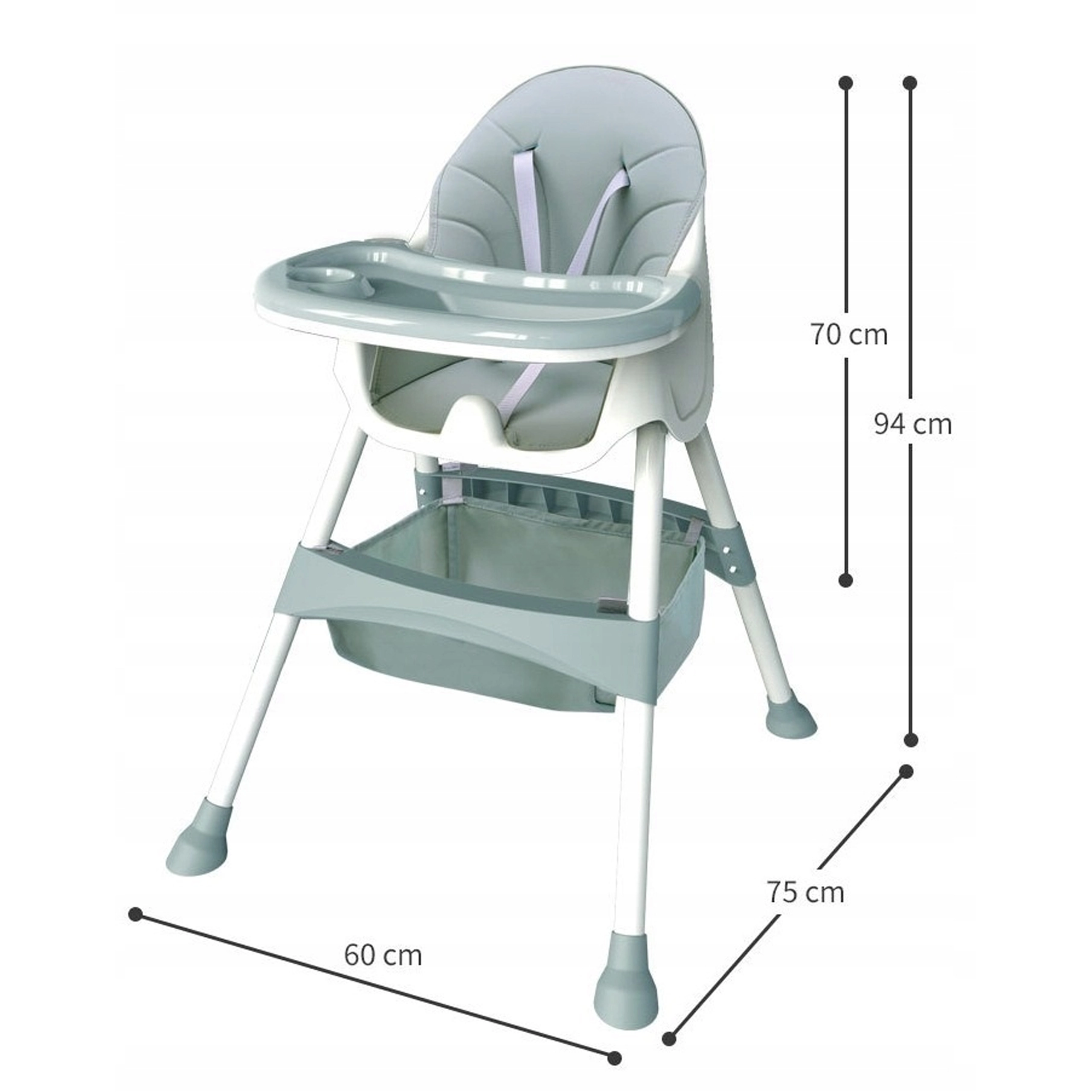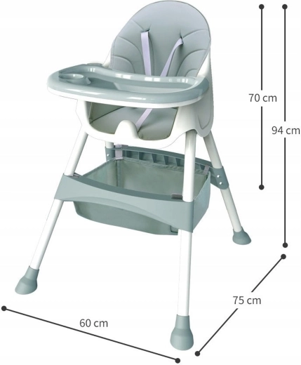 • 3 használati mód: magas etetőszék, alacsony szék tálcával, alacsony szék tálca nélkül