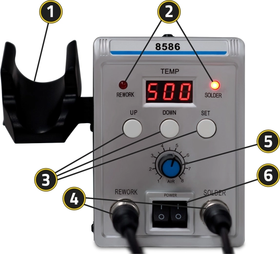 - UP/DOWN/SET gombok, Rework/Solder üzemmódváltás