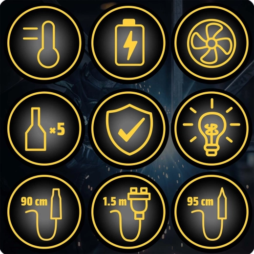 Stabil teljesítmény és biztonság a kefementes ventilátornak, a hőmérséklet-kalibrálásnak és a 80 °C alatt aktiválódó automatikus alvó módnak köszönhetően – hosszabb élettartam és energiatakarékosság. A praktikus markolattartó és a tisztítószivacs növelik a munkakényelmet.