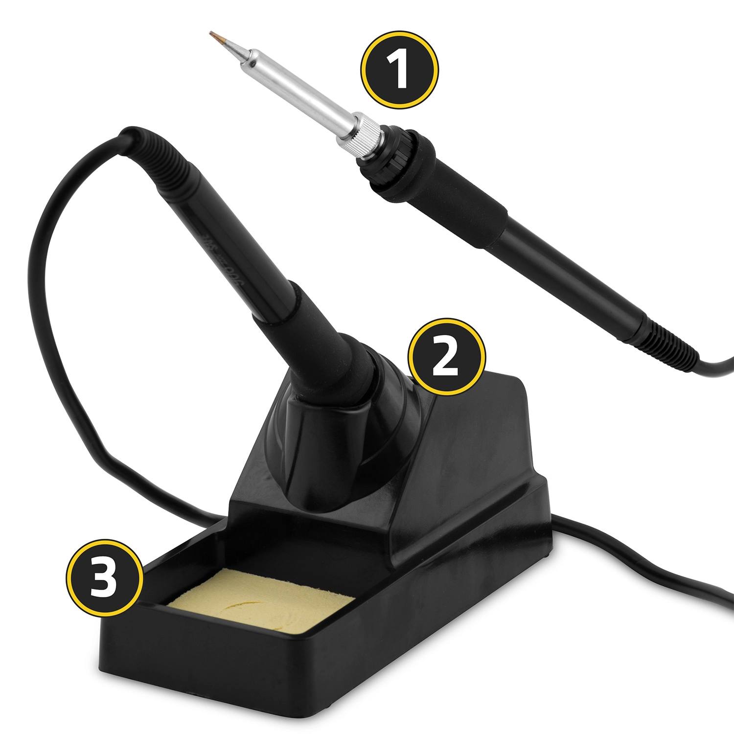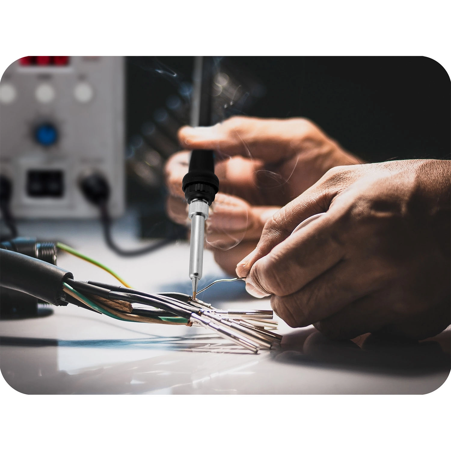 - Páka (200–500 °C / 60 W): kontrollált hő finom kötésekez, THT-hez, kábelekhez és kis SMD-khez kúpos heggyel.