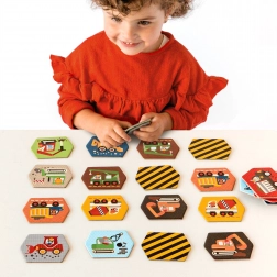 Keresel egy szórakoztató és oktatási tevékenységet a gyermekeid számára? Pexeso Építőipari Gépek nagyszerű választás! Ez a játék építőipari gépek tematikájú pexeso kártyákat tartalmaz, amelyek nemcsak szórakoztatják a gyerekeket, hanem segítenek fejleszteni kognitív képességeiket is. A robusztus kialakítás ideális a kis kezek számára, és az egész készlet környezetbarát, mivel újrahasznosított anyagokból készült és növényi tintákkal nyomtatott.