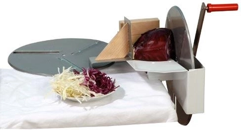 Praktikus kézi káposztagyalu az asztalnál végzett gyors és egyenletes szeleteléshez. A forgó mechanizmusnak, az 5 éles késnek és az erős leszorító csíptetőnek köszönhetően a káposzta előkészítése egyszerű és biztonságos. Szétszedhető, helytakarékos és könnyen tisztítható.