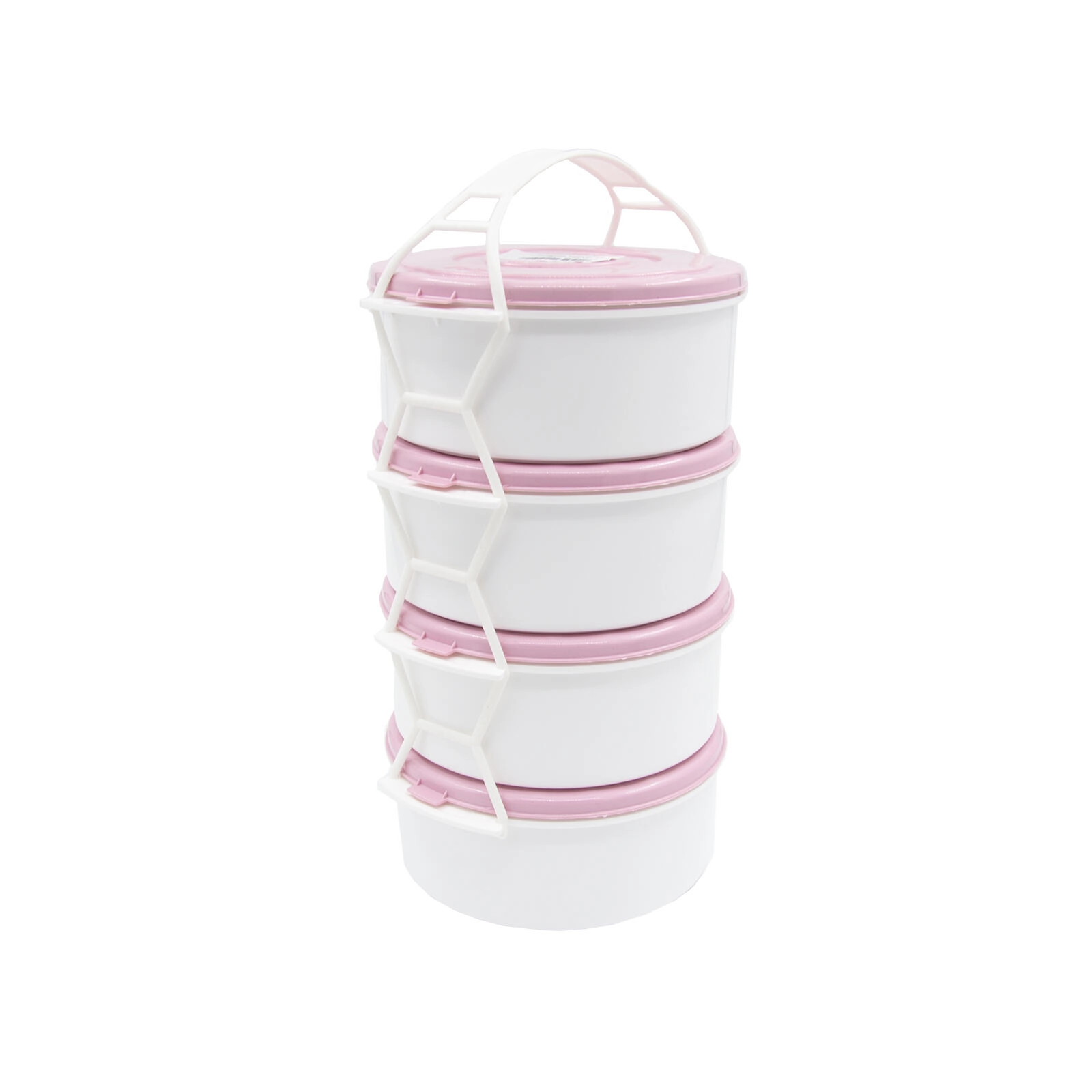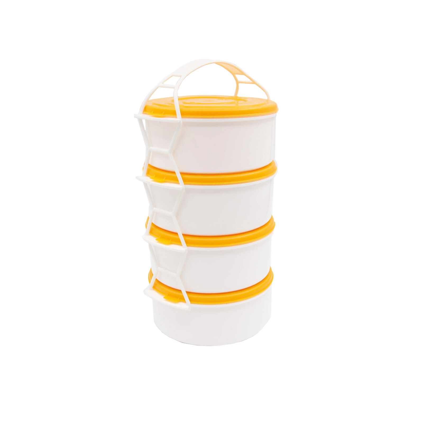 Ez a többszintes ételhordó okos és higiénikus megoldást kínál a mindennapi ételszállításhoz munkába, iskolába vagy kirándulásra. A négy, egyenként 1 l-es, különálló edény elfér benne leves, főétel, köret és desszert, míg a fogantyús, masszív keret stabil szállítást biztosít nem kívánt szétesés nélkül.