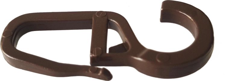A nagy függönykampó megbízható segítőtárs a függönyök rögzítéséhez otthon és irodában egyaránt. A barna szín jól illik a természetes és a sötétebb karnisokhoz, diszkréten belesimul a térbe. Az erős műanyagnak köszönhetően a kampó könnyű, mégis elég tartós a mindennapos használathoz.