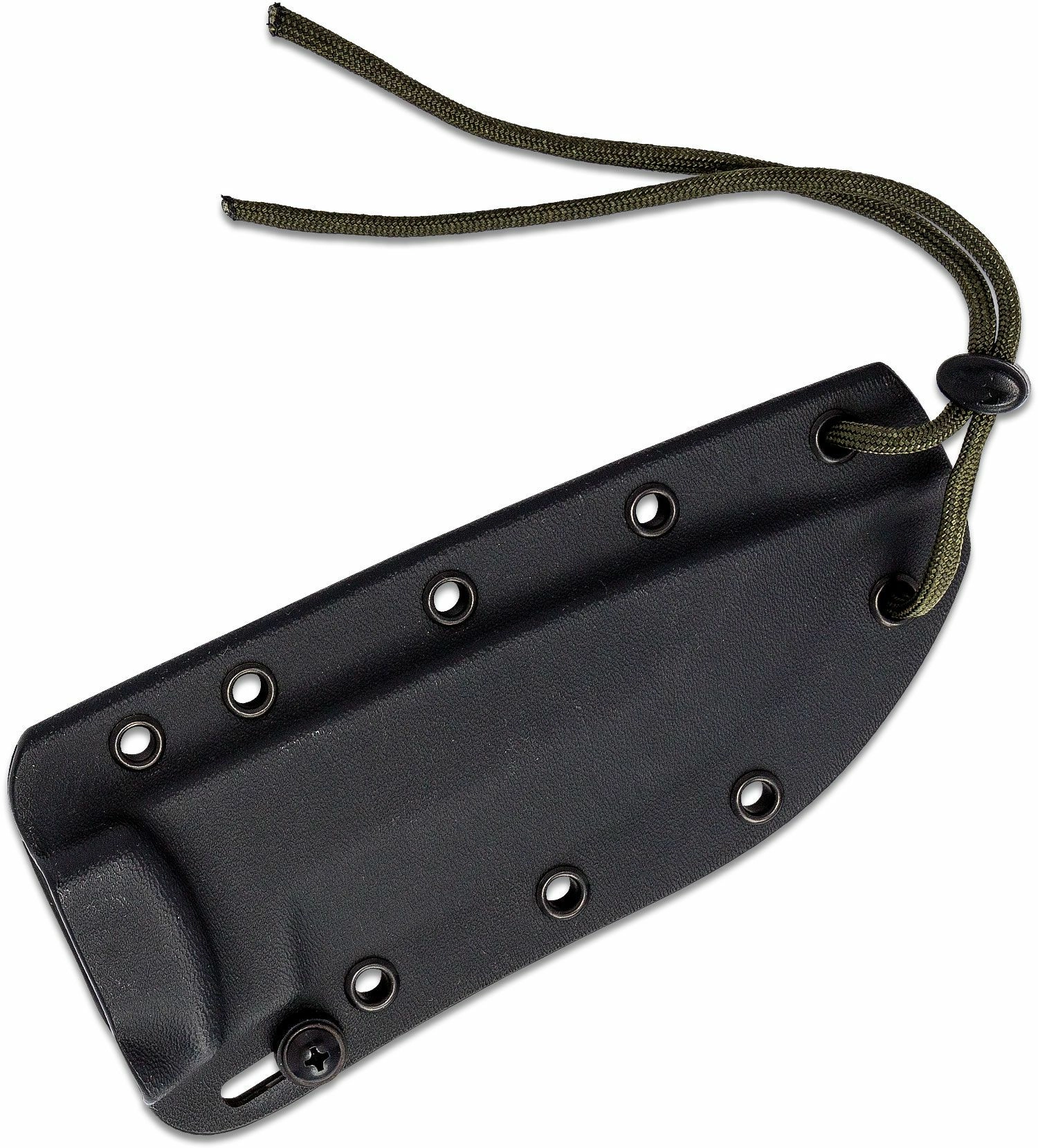 A fekete–zöld kompozit G10 markolat 3D marással biztos fogást ad kesztyűben vagy nedvesen is. A praktikus zsinórlyuk bővíti a rögzítési és hordási lehetőségeket. A csomag tartalma egy formázott kydex tok a biztonságos, gyors előrántáshoz.