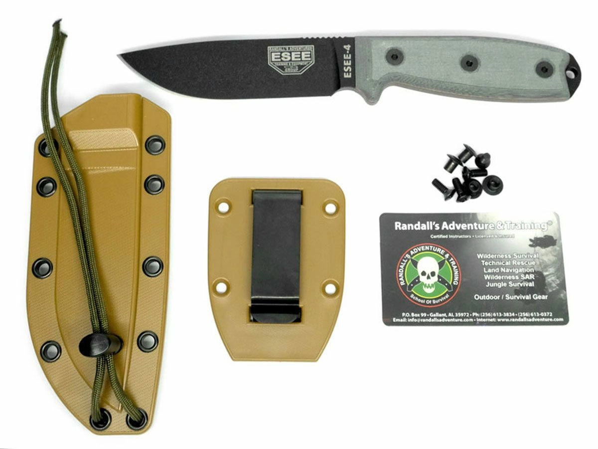 Az ESEE 4P univerzális kés népszerű választás taktikai felhasználásra, bushcrafthoz és túléléshez a természetben. Masszív full tang szerkezetet, Drop Point típusú pengét kínál 1095-ös szénacélból, fekete porszórt felületkezeléssel, valamint biztos fogást a csúszásmentes G10 markolatnak köszönhetően. A csomag része egy strapabíró Coyote Brown kydex tok és egy zsinór.