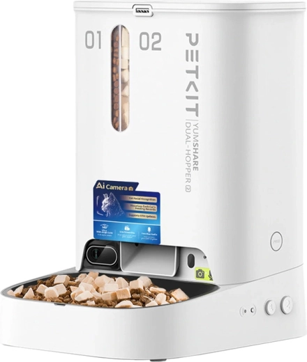 Tökéletes rálátás a macskák és kistestű kutyák étrendjére a beépített MI-nek köszönhetően: a készülék felismeri az egyes kedvenceket, hozzárendeli a megevett adagokat, és az alkalmazásban pontos adatokat jelenít meg. Az élőképes kamera a etetés előtti/utáni videó- és fotórögzítéssel segít gyorsan észlelni az étvágyváltozásokat és támogatja az egészséges szokásokat.