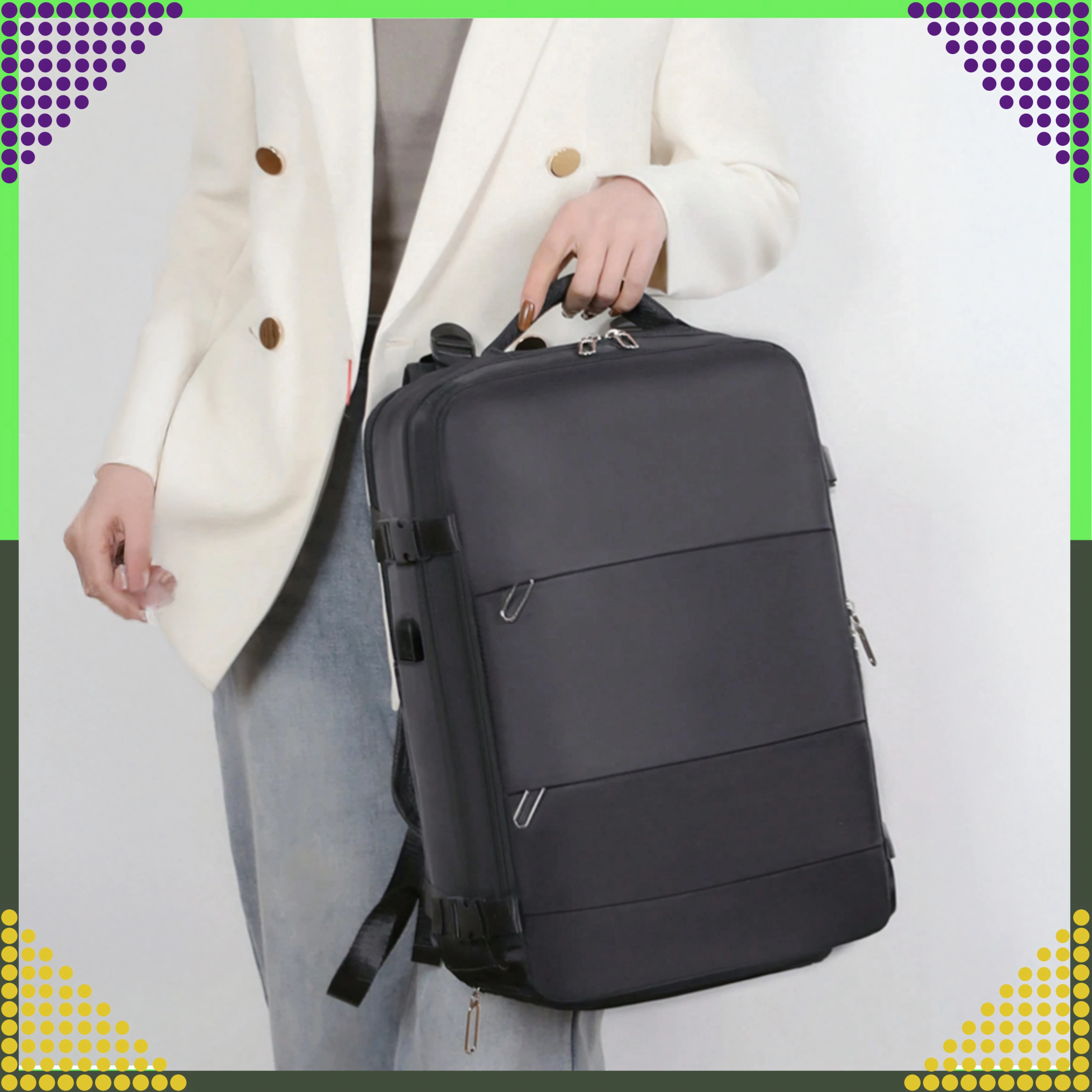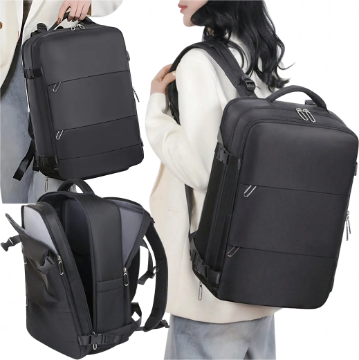Ez a sokoldalú utazó hátizsák ötvözi a kézipoggyász funkcionalitását a klasszikus hátizsák kényelmével. A vízálló nejlon/oxford anyag és a tartós cipzárak megóvják a holmikat a nedvességtől és a szennyeződésektől, míg a formartott kialakítás és a több rekesz áttekinthető rendet biztosít. A főrekesz 180°-ban, bőröndszerűen nyitható a könnyű pakolásért.