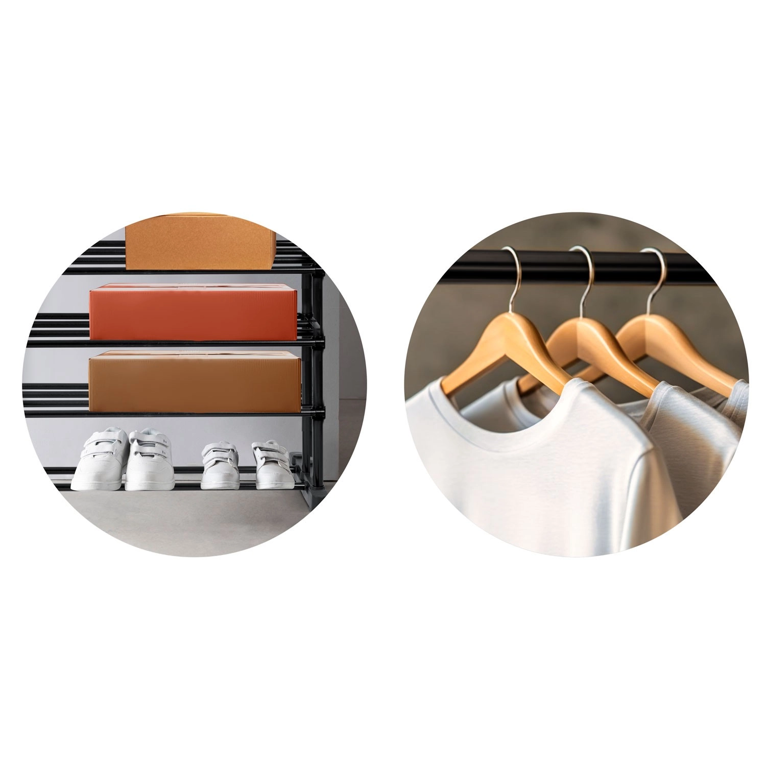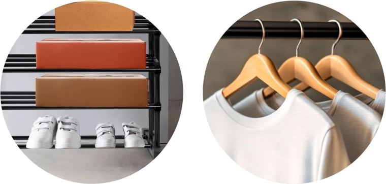 A többszintes polcok helyet biztosítanak a lábbeliknek, tárolódobozoknak és kiegészítőknek, hogy minden kéznél és átláthatóan elrendezve legyen.