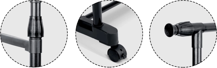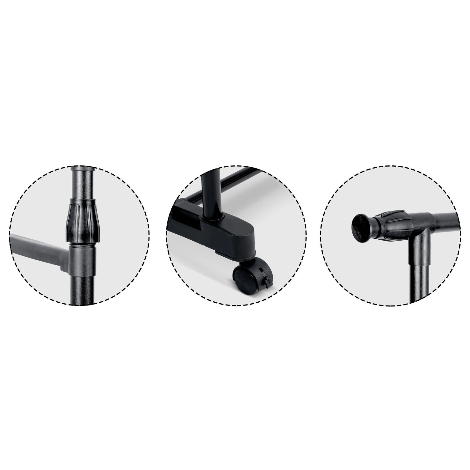 A állítható magasság és szélesség révén könnyen a pillanatnyi igényekhez igazíthatod – a gyerekruhától a hosszú kabátig. A forgó, fékezhető kerekek egyszerre biztosítanak mobilitást és stabil rögzítést. A könnyű, mégis masszív acélszerkezet napi használat mellett is stabilitást nyújt.