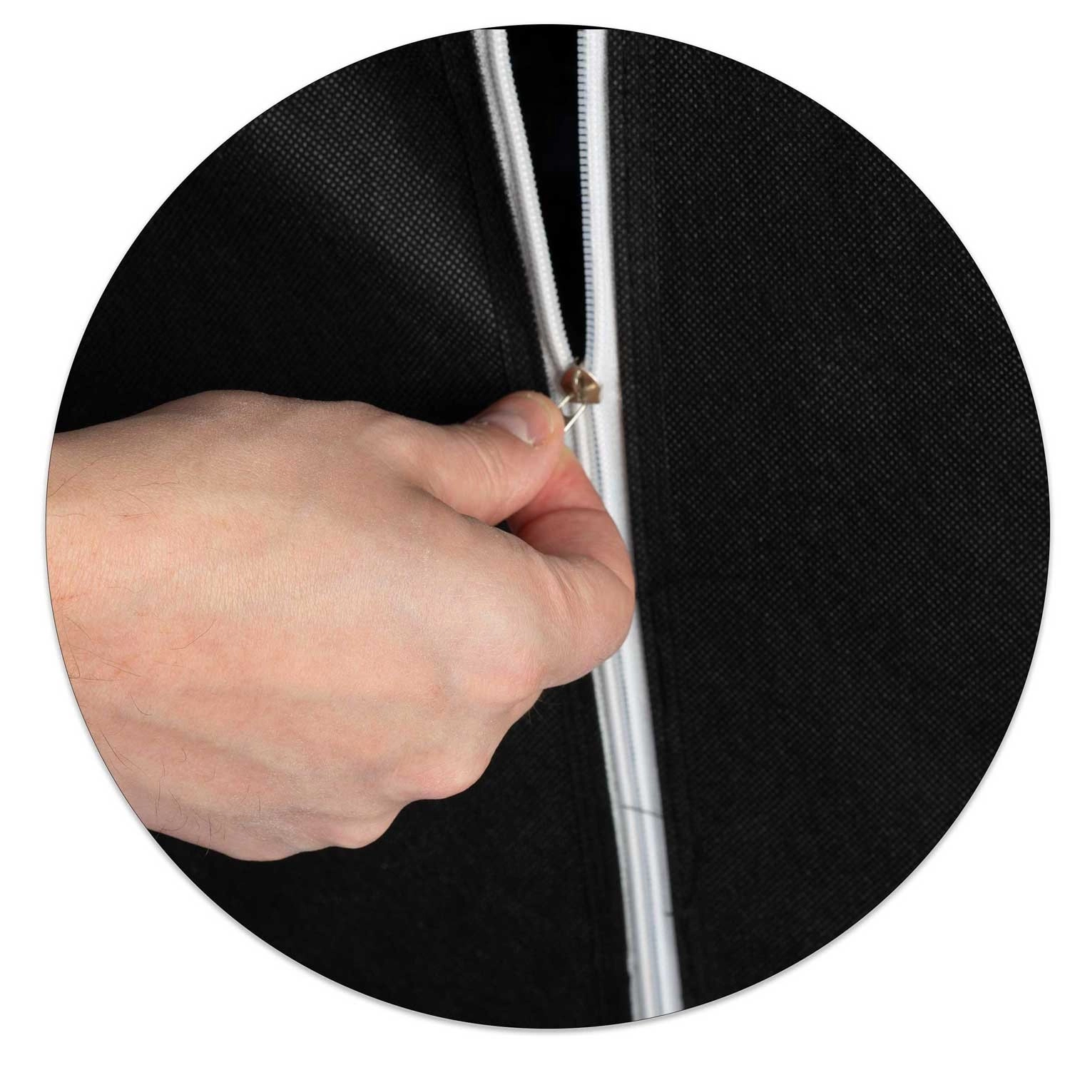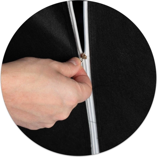 A védő huzat ideális kiegészítő otthoni és professzionális környezetben használt polcokhoz. A fekete színű, légáteresztő textil hatékonyan csökkenti a por lerakódását, és esztétikusan eltakarja a polcok tartalmát. A teljes magasságban futó cipzár megkönnyíti a mindennapi használatot, és gyors nyitást tesz lehetővé csak akkor, amikor szükség van rá.