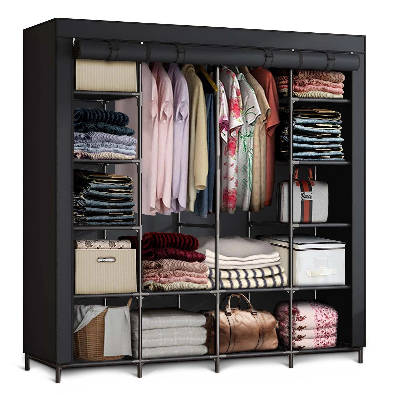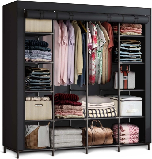 A feltekerhető, cipzáras előlapok védik a ruhákat a portól, és gyors hozzáférést biztosítanak a szekrény minden részéhez.