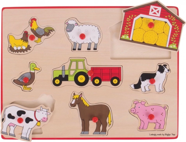 A gazdálkodás szórakoztató ezzel a gyönyörűen színes fa puzzle-lel a Bigjigs Toys márkától. Minden darab ideális a kisgyermek kezek számára, fejlesztve érzékszervi készségeiket.