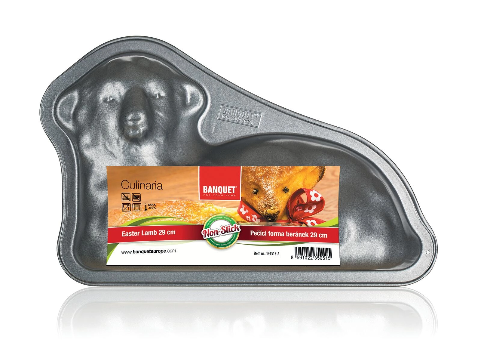 A részletgazdag domborításnak köszönhetően gyönyörűen formázott 3D bárányt kap, amely készen áll porcukorral, mázzal vagy szalaggal való díszítésre. A forma ideális piskóta-, kuglóf- és kevert tésztákhoz, a tapadásmentes bevonatnak köszönhetően pedig könnyen tisztán tartható – elég finoman áttörölni vagy leöblíteni.