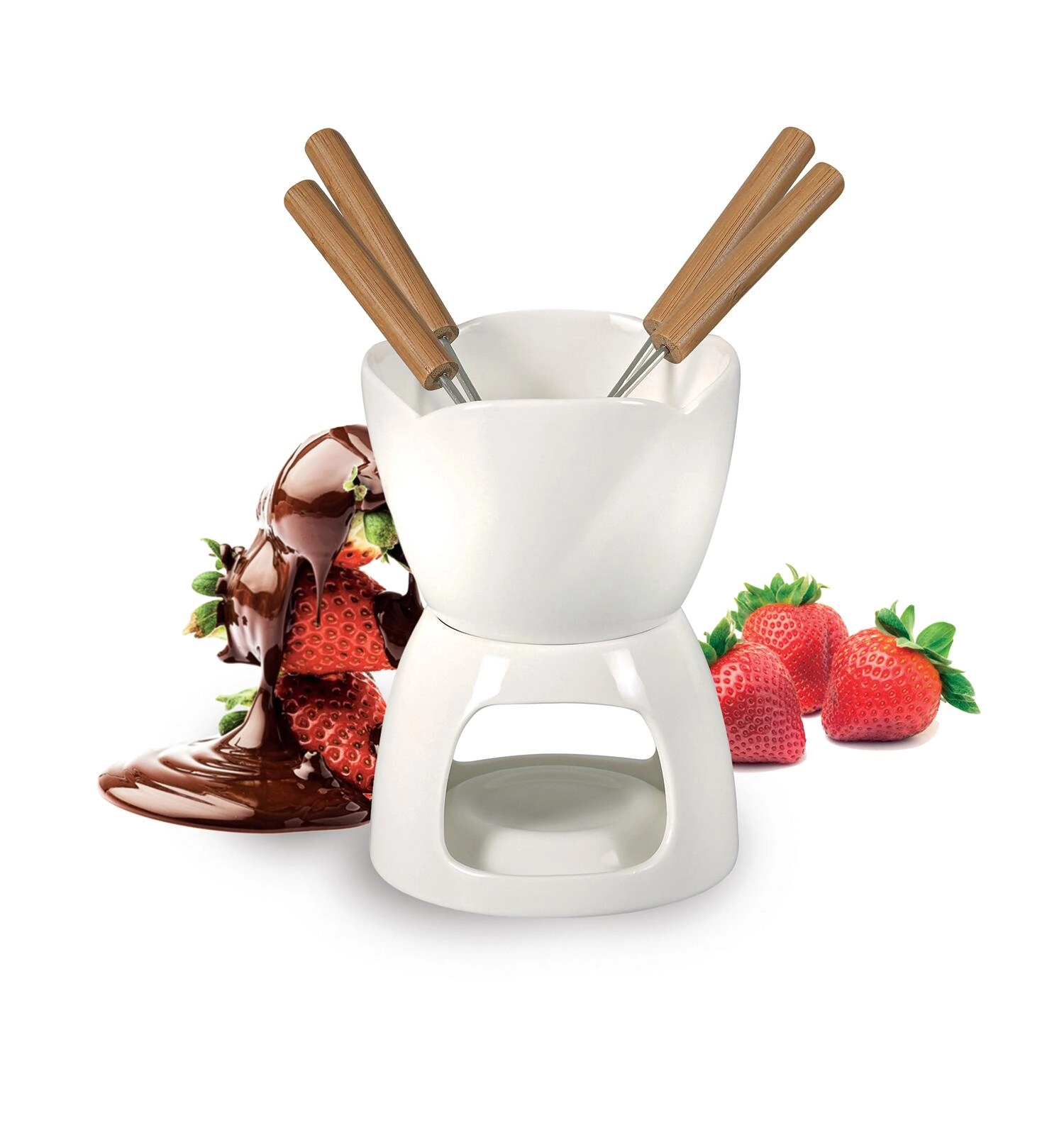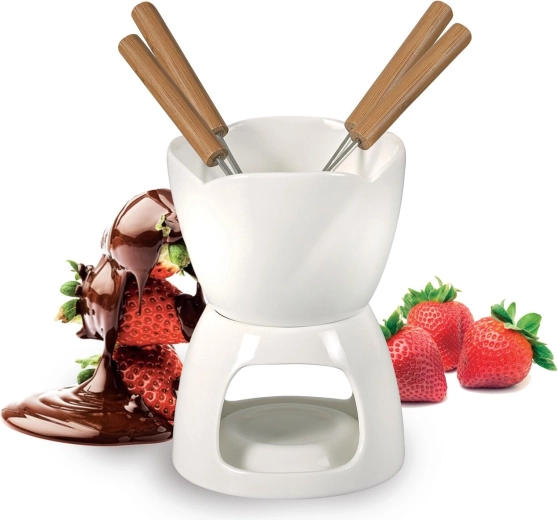 A tál és az állvány tartós fehér kerámiája stabil hőmérsékletet biztosít, így a csokoládé folyamatosan sima és folyékony marad, odaégés nélkül.