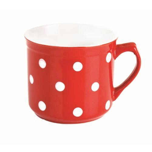 Stílusos, retró bögre 660 ml űrtartalommal, piros színben fehér pöttyökkel, amely kicsiknek és nagyoknak egyaránt örömet szerez. Ideális mindennapi használatra – forró kakaóhoz, teához és kávéhoz. Egyszerű karbantartás a mosogatógépben mosható kialakításnak köszönhetően, és biztonságos mikrohullámú sütőben való használat.