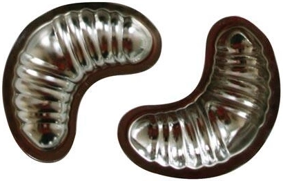 Praktikus kifli alakú süteményformák készlete a kedvelt vaníliás és vajas kiflik egyszerű sütéséhez. A csomag 20 db ónozott lemezből készült formát tartalmaz, amelyek egyenletes átsülést és a tészta könnyű kifordítását biztosítják.