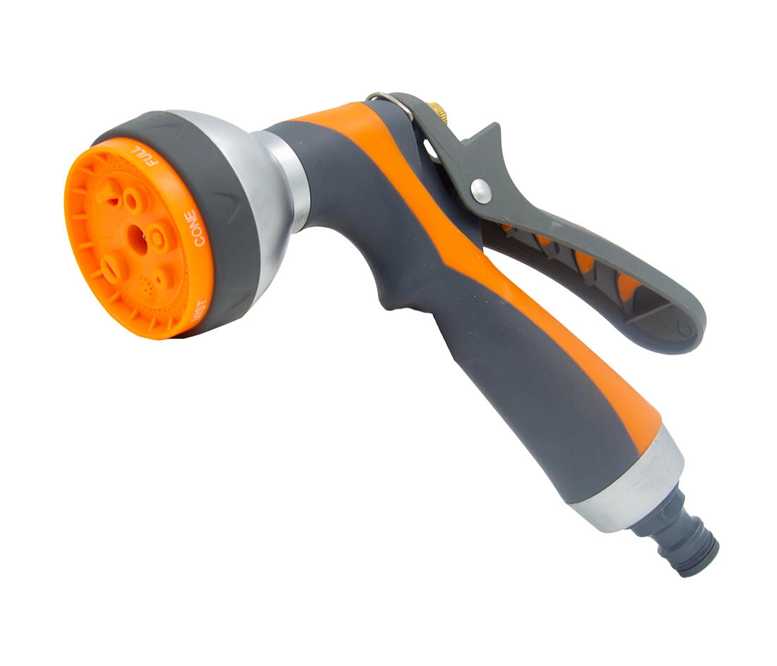 Ez a fém permetezőpisztoly 7 üzemmóddal (pl. Jet, Shower, Mist, Cone, Full) kiváló választás a sokoldalú kerti ápoláshoz és otthoni tisztításhoz. Az ergonomikus pisztolymarkolatnak és a ravasznak köszönhetően könnyen beállítható az intenzitás az érzékeny palántákhoz, ágyásokhoz vagy az erőteljes leöblítéshez.