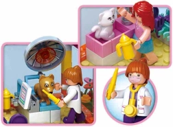 A SLUBAN Állatorvosi Klinika építőkészlet ideális 6 éves kortól gyermekek számára, 195 darabot tartalmaz és korlátlan játéklehetőséget kínál. A csomagban két valósághű figurát találsz, amelyek fej dőlése, törzs forgatása és kar mozgása lehetőséggel rendelkeznek. Ezzel az építőkészlettel fejlesztheted a gyermekek finom motorikus képességeit és kreativitását.