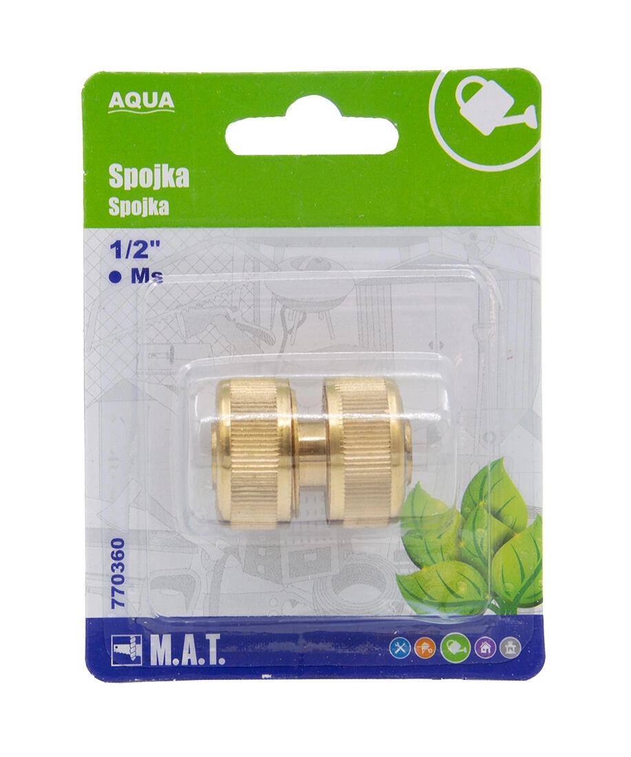 Univerzális AQUA csatlakozó minőségi sárgarézből, 1/2" átmérőjű kerti tömlőkhöz. Kínálja a korrózióállóságot, a megbízható csatlakozást és a hosszú élettartamot mindennapi kerti használathoz.