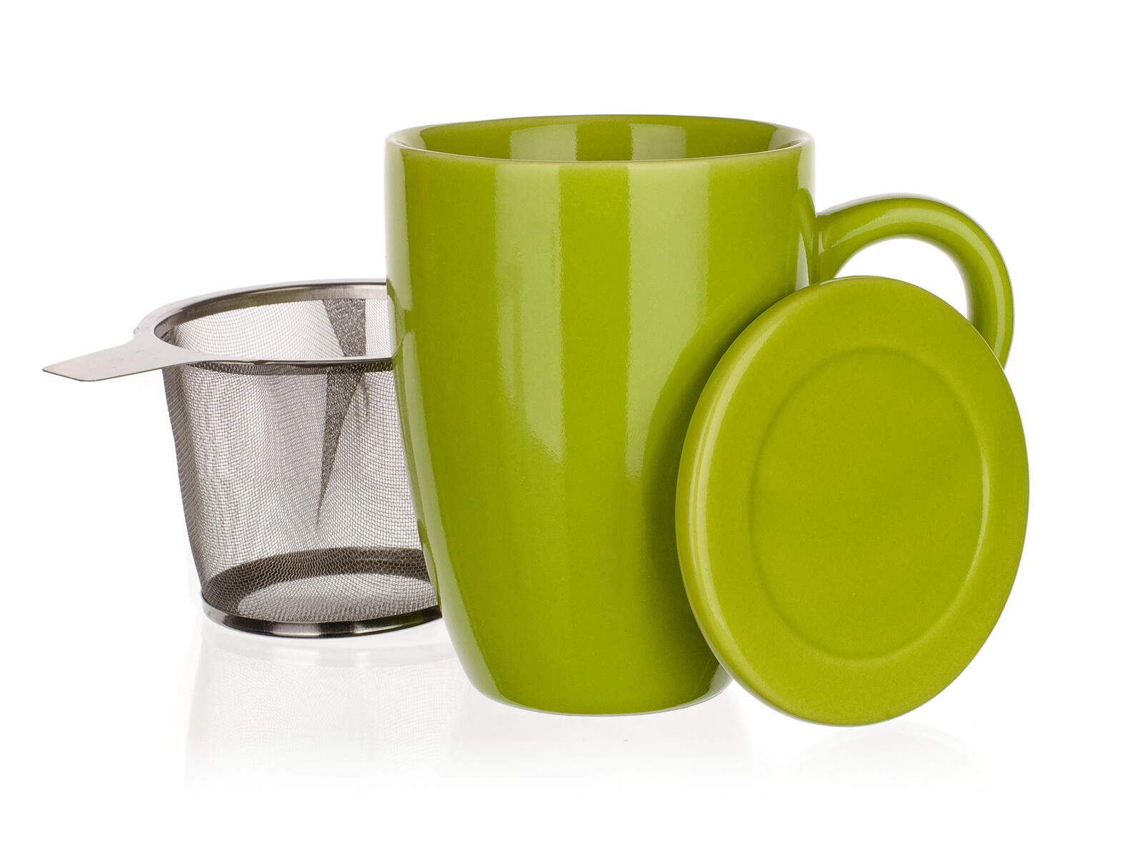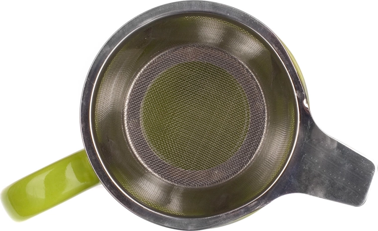 Élvezze a szálas tea kényelmes elkészítését a BONNET bögrével. A minőségi kerámia fényes zöld mázzal kellemes fogású, a fedő segít tovább melegen tartani az italt, és áztatás után praktikus pihenőként szolgál a szűrőnek.