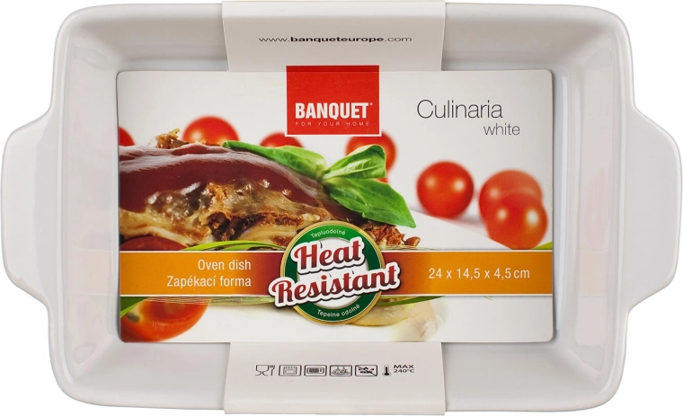 A CULINARIA White téglalap alakú kerámia sütőtál ideális tészták, zöldségek, húsok és édes desszertek sütéséhez, rakott ételekhez. A kerámia kiválóan tárolja és egyenletesen adja át a hőt, így az étel szépen és egyenletesen átsül. Az elegáns hullámmintás domborítás és a fehér máz bármely konyhához illik, és közvetlen tálalásra is alkalmas az asztalon.