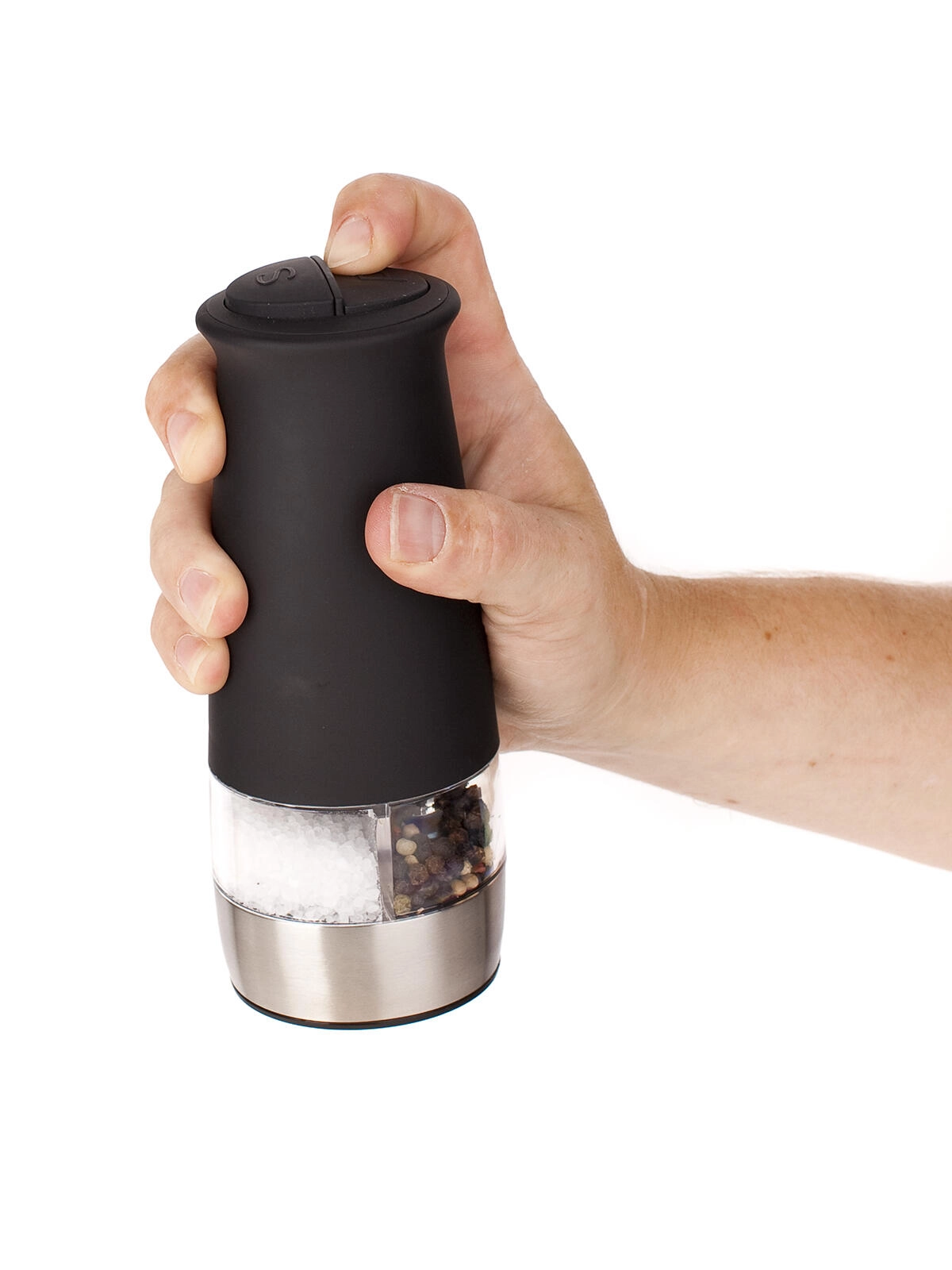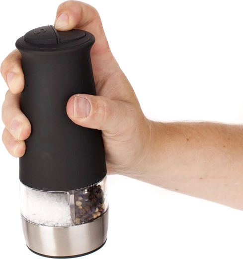 Az ergonomikus felső gomb kényelmes egykezes használatot tesz lehetővé, így keverés vagy tálalás közben is ízesíthet. Az átlátszó házrész azonnali rálátást ad a fűszerek mennyiségére, a matt fekete felület pedig modern megjelenést kölcsönöz a konyhájának.