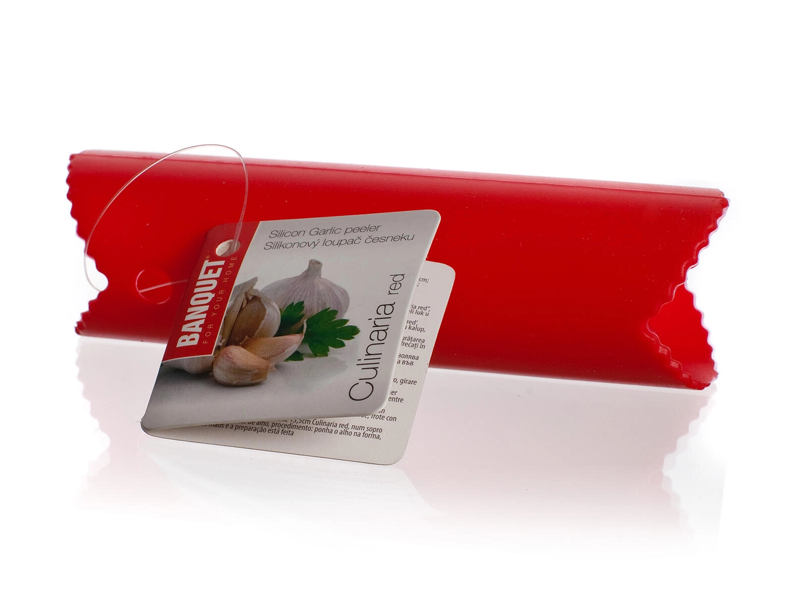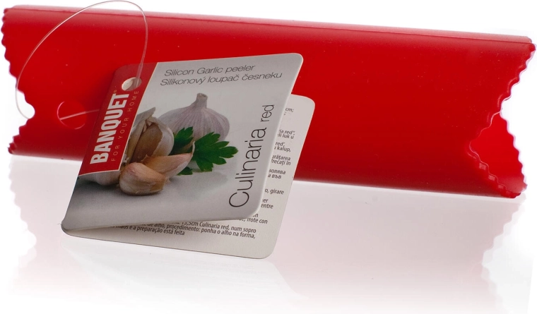 Praktikus CULINARIA piros szilikon fokhagymahámozó 13,5 cm hosszúsággal és 3,5 cm átmérővel, amellyel néhány másodperc alatt megpucolhatja a fokhagymát. Elég egy könnyű görgetés, és a gerezdek máris készen állnak a további felhasználásra – gyorsan, tisztán és ujjakon maradó szag nélkül.
