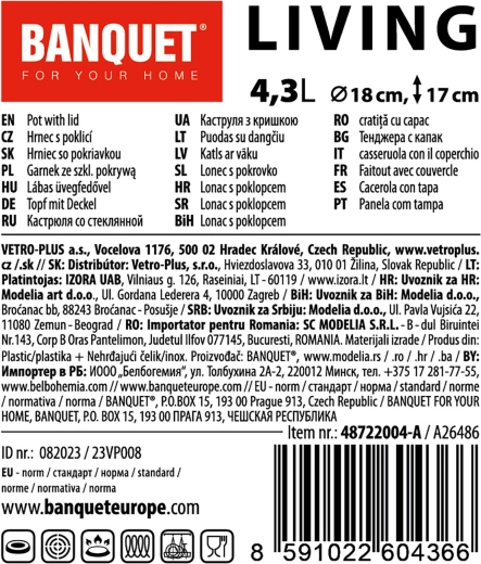 A LIVING rozsdamentes fazék 18 cm átmérővel és 4,3 l űrtartalommal megbízható segítőtárs levesek, mártások és köretek főzéséhez. Az üvegfedő rozsdamentes gombbal lehetővé teszi a főzés kényelmes ellenőrzését felesleges hőveszteség nélkül. A belső és külső fényes felület megkönnyíti a tisztítást, míg a külső oldalon lévő három matt csík modern megjelenést kölcsönöz a fazéknak.