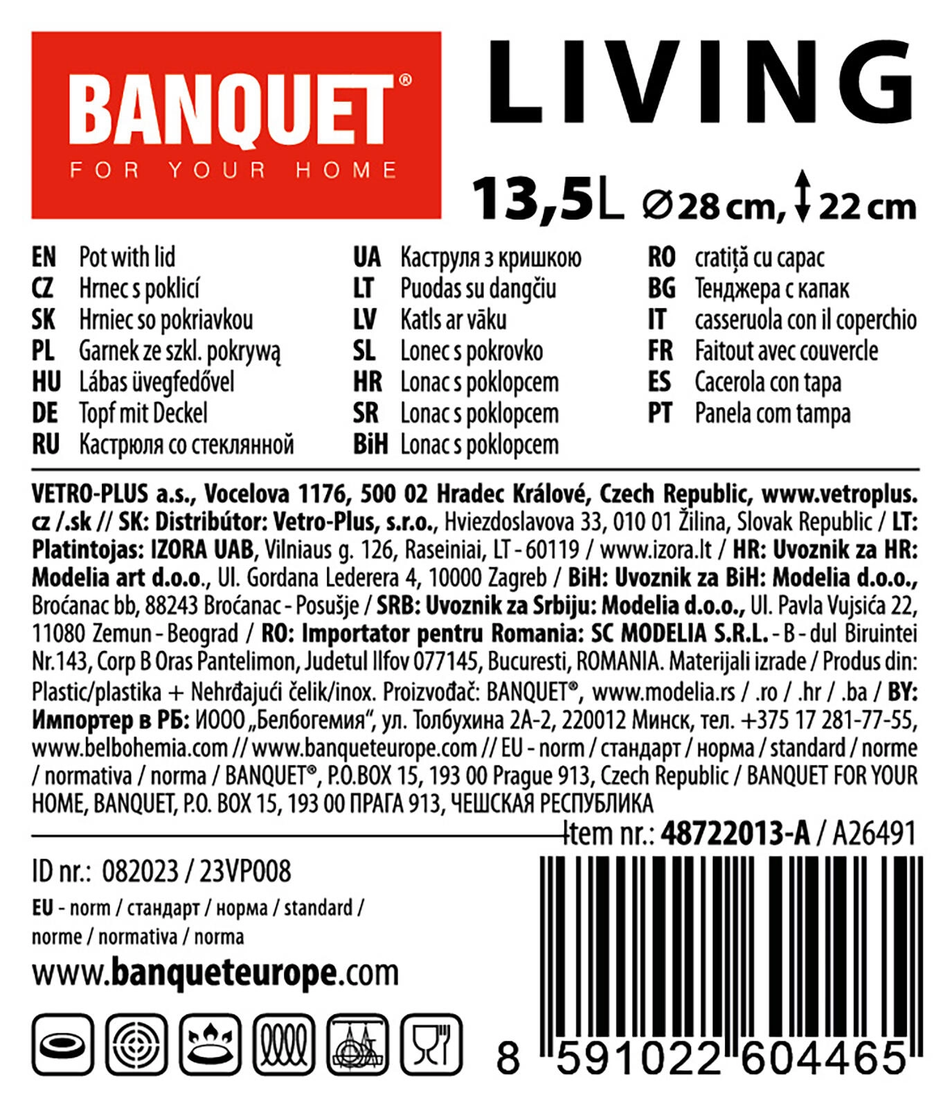 A LIVING rozsdamentes acél fazék megbízható segítőtárs a mindennapi és ünnepi főzéshez egyaránt. A 13,5 literes űrtartalomnak és a 28 cm-es átmérőnek köszönhetően kényelmesen készíthet nagy adagokat az egész család számára. Az üvegfedő rozsdamentes gombbal lehetővé teszi a főzés nyomon követését felesleges hő- és gőzveszteség nélkül.