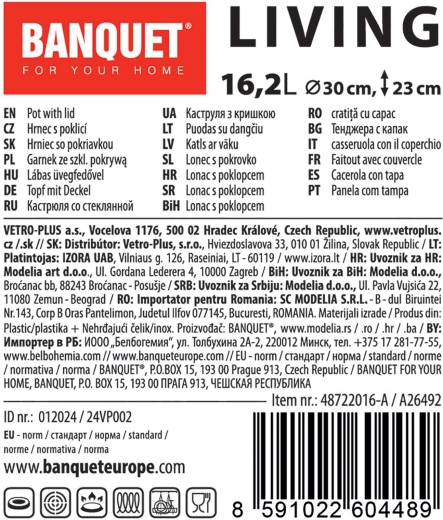 A LIVING rozsdamentes edény a 16,2 l-es professzionális kapacitást időtálló dizájnnal ötvözi. Az üvegfedő lehetővé teszi a főzés kényelmes ellenőrzését a hő és a pára felesleges elvesztése nélkül. A strapabíró rozsdamentes anyagnak köszönhetően az edény praktikus a mindennapos használathoz, és könnyen tisztítható.