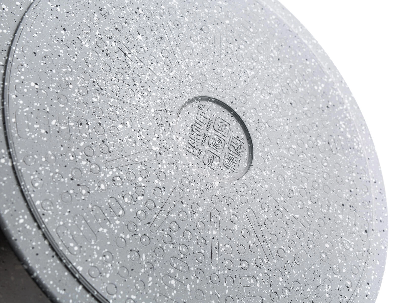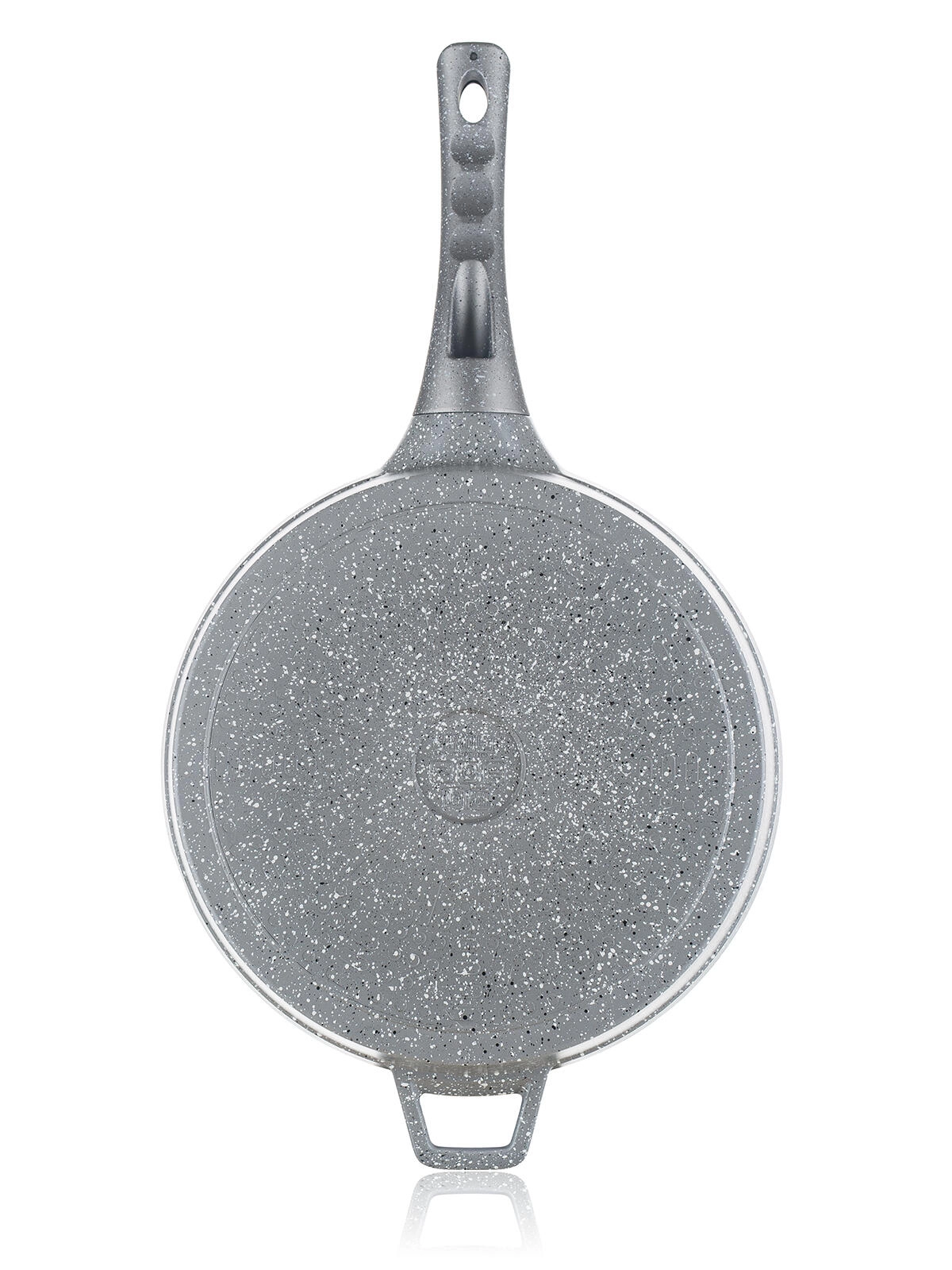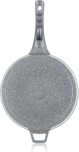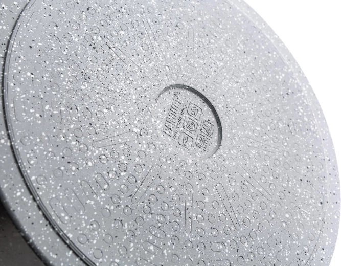 Az alumínium test hatékony hőelosztást biztosít, míg a hőálló gránit permetezett alj növeli a serpenyő tartósságát.