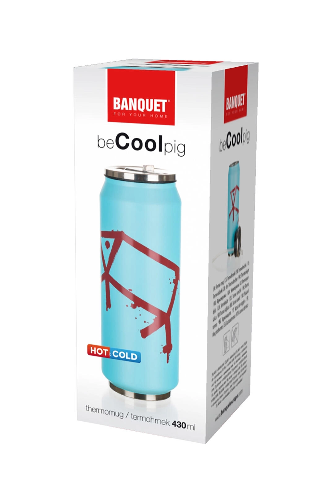 430 ml-es, doboz alakú termoszbögre BE COOL PIG, rozsdamentes, kék