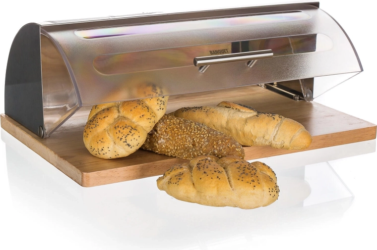 A 39 × 28,5 × 15 cm praktikus méreteknek köszönhetően kényelmesen elfér benne a napi pékáru-mennyiség. A minőségi anyagok segítenek megőrizni az optimális frissességi feltételeket, és védik a pékárut a portól és a kiszáradástól. A matt rozsdamentes acél modern megjelenést ad a konyhának, és könnyen tisztítható.