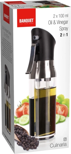 Fedezze fel az okos ízesítési megoldást – a CULINARIA olaj- és ecetszórót két különálló kamrával (2×100 ml) egy palackban. Lehetővé teszi az olaj és ecet gyors, higiénikus permetezését vagy adagolását külön-külön, teljes kontroll mellett. Az átlátszó test megkönnyíti a mennyiség és az arányok követését, a rozsdamentes acél gyűrű pedig elegáns megjelenést kölcsönöz.