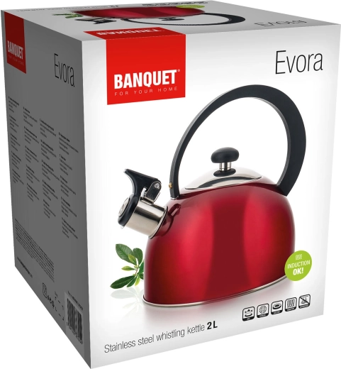 Elegáns, rozsdamentes EVORA kanna 2 l űrtartalommal, ideális a mindennapi vízforraláshoz. Kínál sípját a forrás jelzésére, kompatibilitást minden főzőfelülettel, beleértve az indukciósat is, valamint biztonságos bakelit fogantyút a kényelmes kiöntéshez.