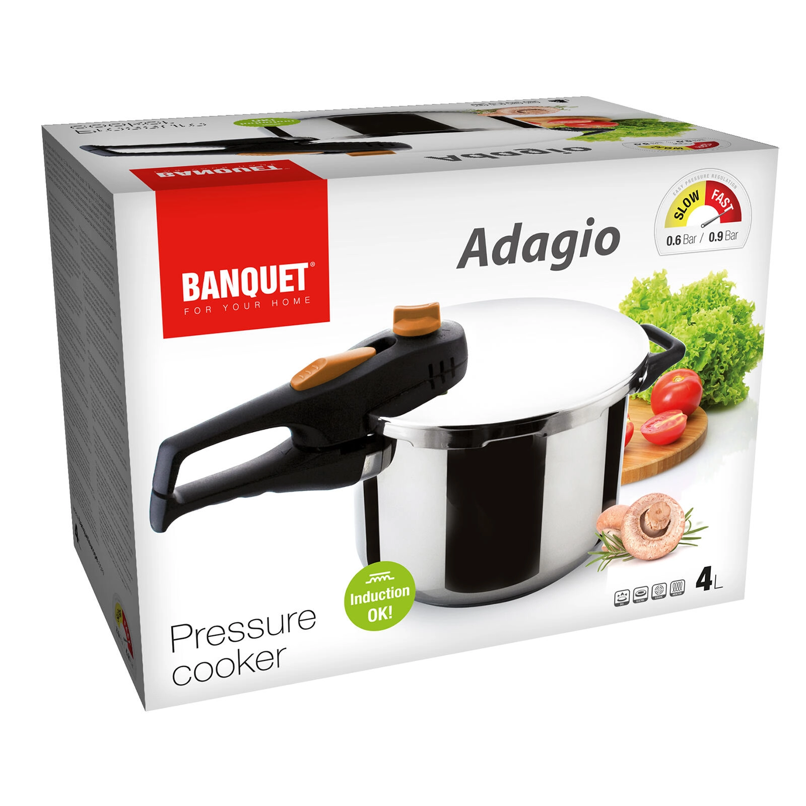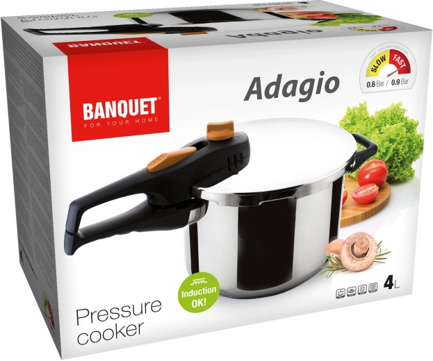 Az Adagio 4 l-es kuktát a mindennapi, gyors főzéshez tervezték, a biztonság és a hosszú élettartam előtérbe helyezésével. A 18/8 rozsdamentes acél testet 5 mm-es szendvics alj egészíti ki az egyenletes hőelosztásért és a főzőfelületen való stabilitásért, beleértve az indukciósat is. A praktikus bajonettes zár könnyű és biztos fedélreteszelést nyújt.