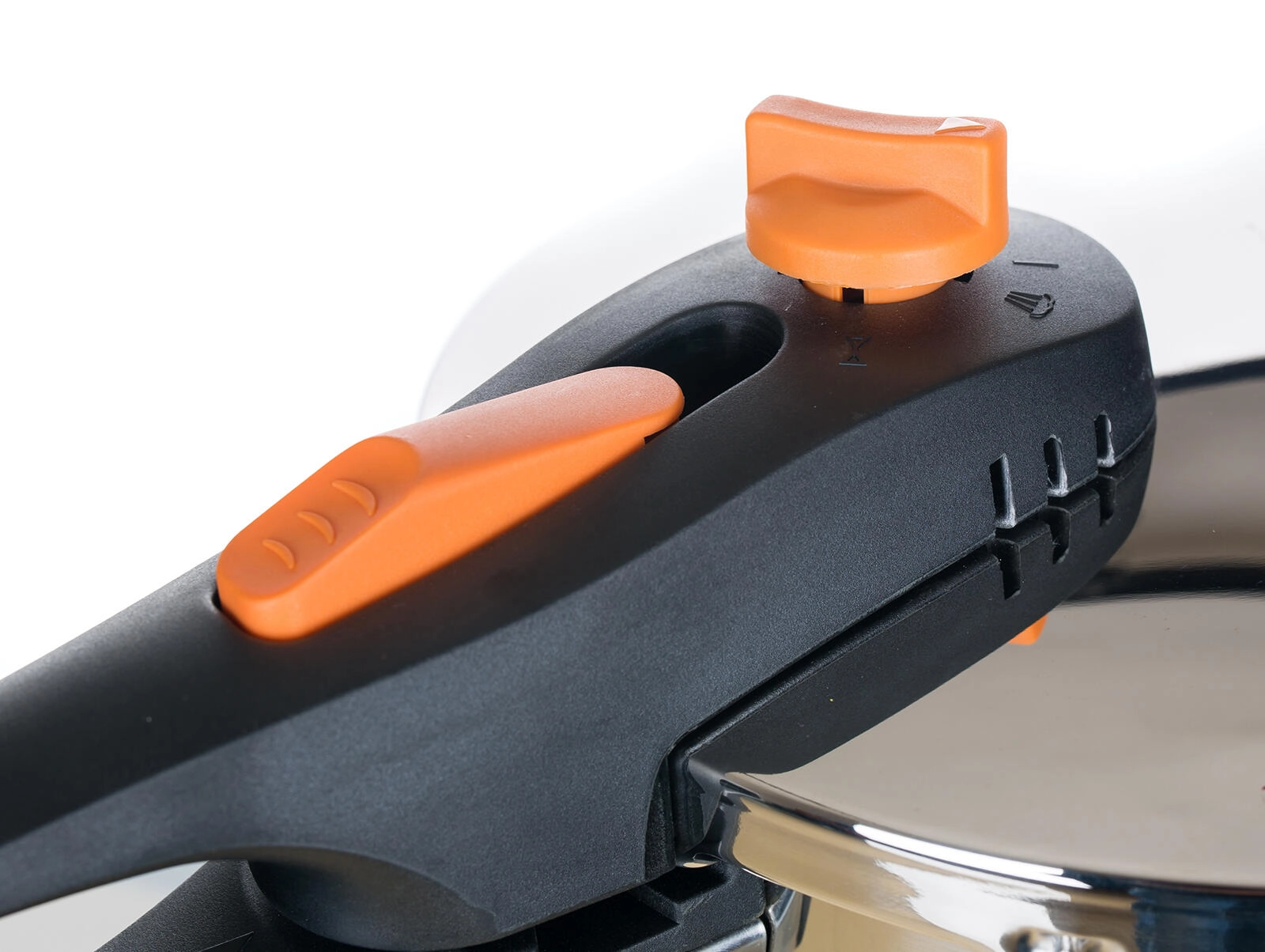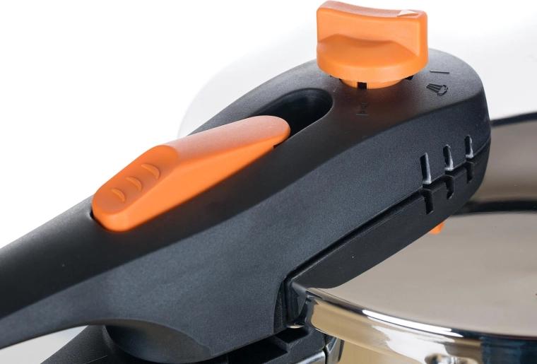 Intuitív nyomásszabályzás és gőzleeresztés a markolaton található jól látható narancssárga elemeknek köszönhetően az átlátható és gyors használatért.
