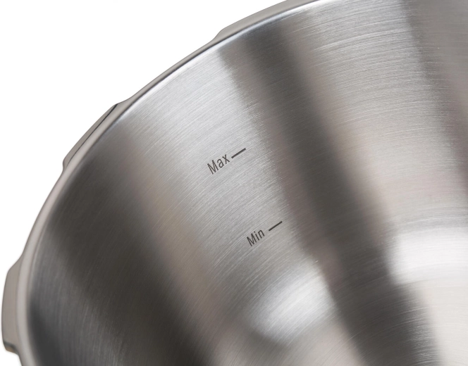 A biztonságos működésről a fedélen lévő üzemi szelep, a nyomás alatti nyitás elleni biztosíték és a szilikon tömítés gondoskodik a tökéletes zárásért. A két választható üzemi nyomás (0,6 vagy 0,9 bar) lehetővé teszi a főzés igazítását a különböző alapanyagokhoz – a zsenge zöldségtől a keményebb húsokig.