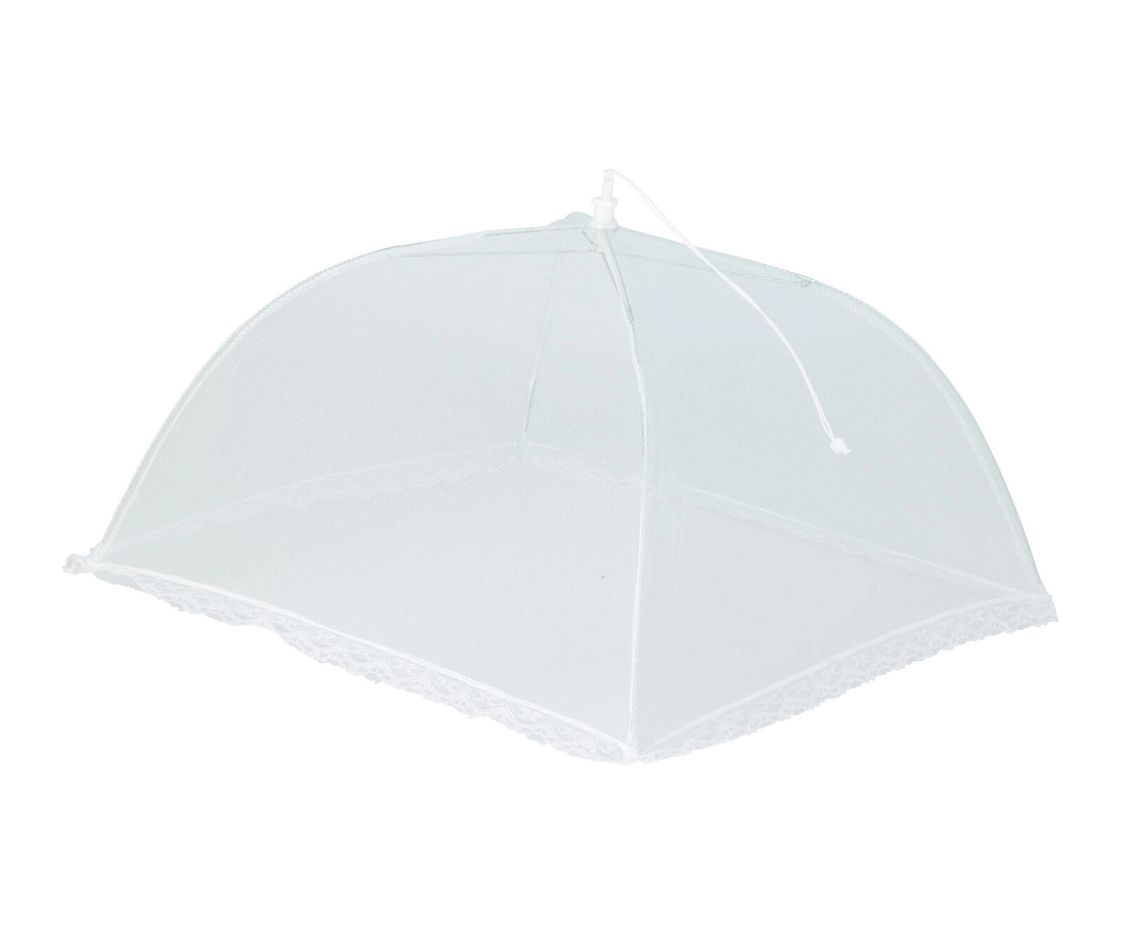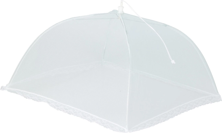 Praktikus, 30 cm átmérőjű összecsukható ételtakaró, amely megbízhatóan védi az ételeket a rovaroktól és szennyeződésektől. A nejlon + fém anyagkombinációnak köszönhetően könnyű, tartós és könnyen tárolható. Ideális kerti tálaláshoz, piknikhez és otthoni használatra.