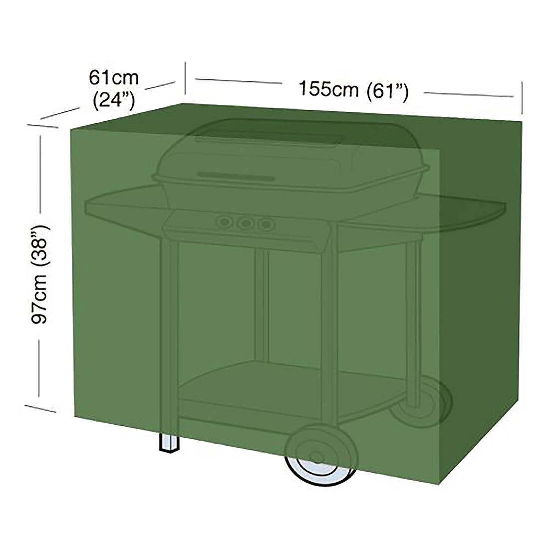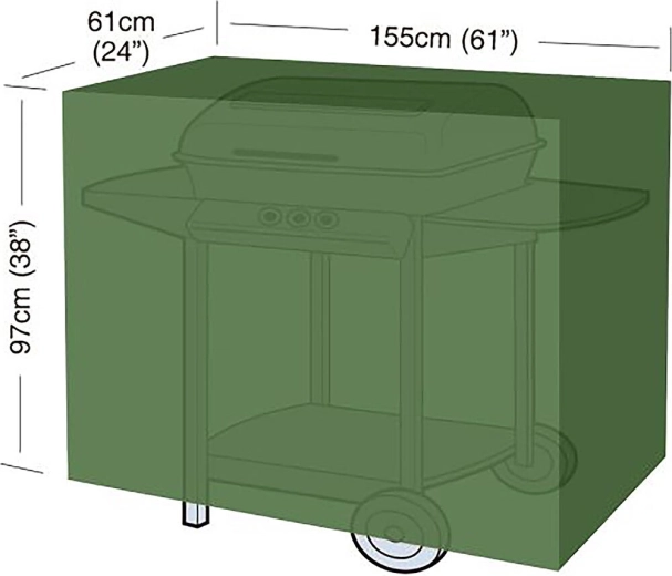 A 155 × 61 × 97 cm méretek megbízható lefedést biztosítanak a szokványos grillekhez, így nem kell tartania az esőtől, portól vagy széltől. A ponyva könnyű és helytakarékos, így a szezon végén egyszerűen eltehető.