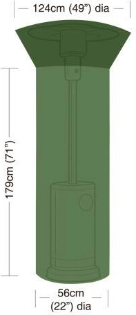 A kiszélesített forma, a kettős átmérővel 124/56 cm és a 179 cm magassággal tökéletesen illeszkedik a legtöbb szabadon álló, „gombakalapos” kerti hősugárzóhoz. A zöld szín elegánsan beleolvad a kert környezetébe.