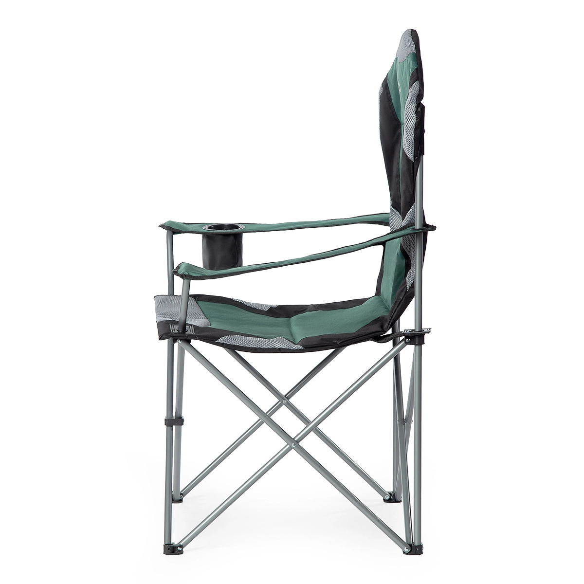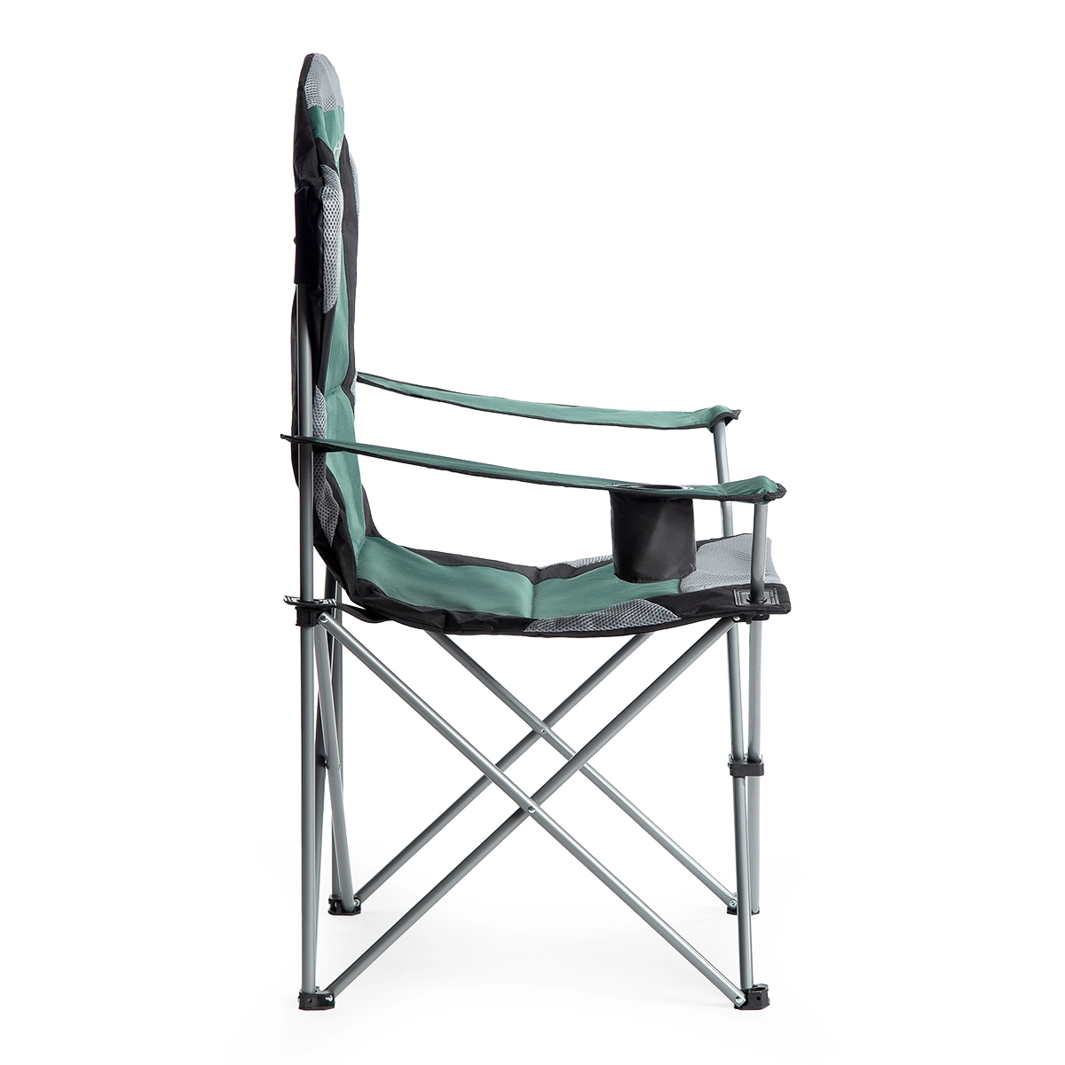 A széket könnyedén kompakt méretre hajthatja és a hordtáskába helyezheti. Az integrált tartó mindig kéznél tartja a palackot vagy poharat.