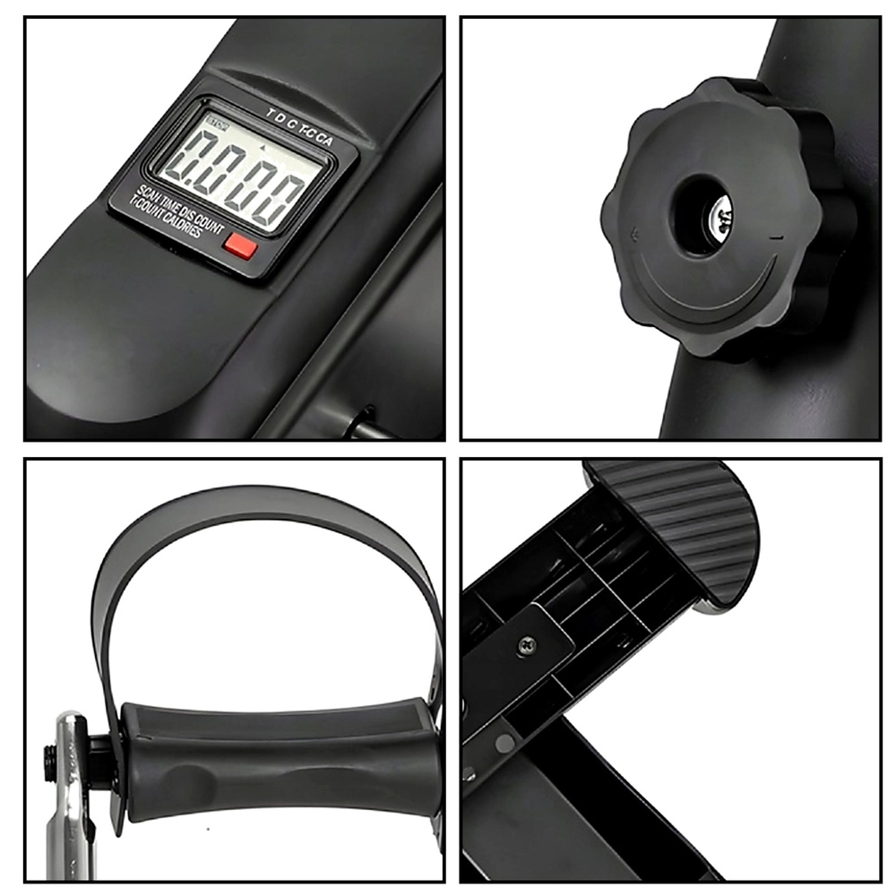 Az integrált LCD kijelző a legfontosabb adatokat mutatja – idő (TIME), kalória (CAL), fordulatszám (CNT), percenkénti fordulat (RPM) és SCAN funkció. A masszív, széles alap, a csúszásgátló talpak és az állítható pedálszíjak biztonságot nyújtanak padlón tekerve és asztalon kézzel forgatva egyaránt.